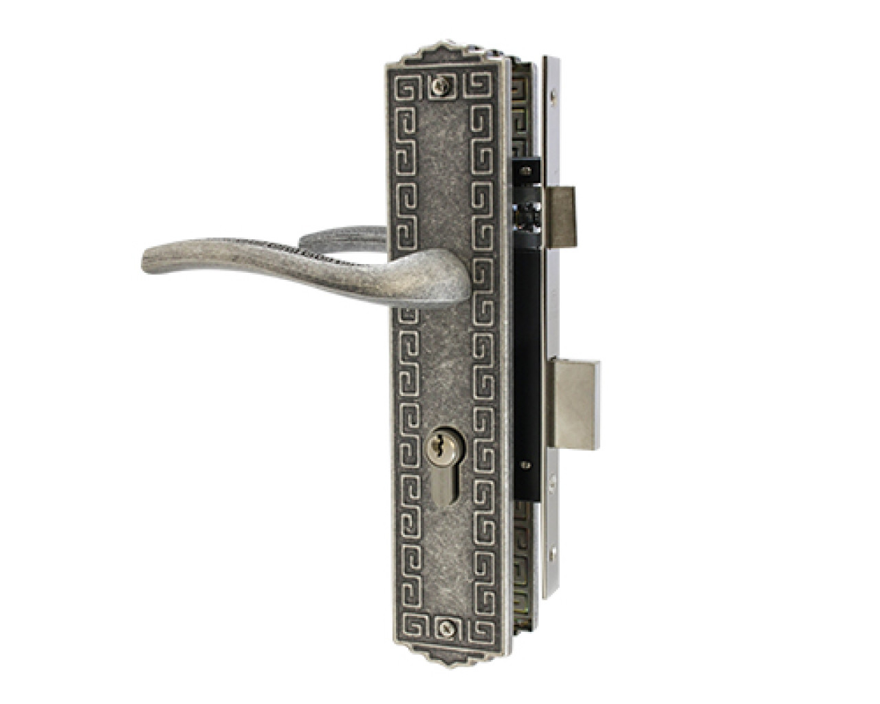 Серия «АРТ». Замок врезной с ручками. Предназначен для установки в деревянные двери толщиной от 30 до 40мм, правого и левого открывания. Дверь может быть закрыта на защелку и открыта с помощью фалевой ручки при открытом засове замка. Прямоугольный ригель, вылет 20мм. Универсальная защелка. Стальной корпус, покрытие - полимерная краска. Межосевое расстояние 70мм. Удаление ключевого отверстия 40мм. Материал ручек - сталь, алюминий. Гальваническое покрытие. Комплектация: цилиндровый механизм 60мм, материал ЦАМ/латунь, 5 ключей, ответная планка, винтовые стяжки.