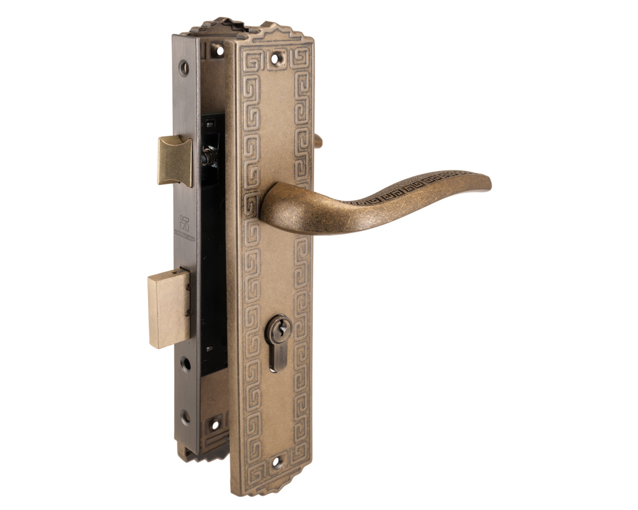 Серия «АРТ». Замок врезной с ручками. Предназначен для установки в деревянные двери толщиной от 30 до 40мм, правого и левого открывания. Дверь может быть закрыта на защелку и открыта с помощью фалевой ручки при открытом засове замка. Прямоугольный ригель, вылет 20мм. Универсальная защелка. Стальной корпус, покрытие - полимерная краска. Межосевое расстояние 70мм. Удаление ключевого отверстия 40мм. Материал ручек - сталь, алюминий. Гальваническое покрытие. Комплектация: цилиндровый механизм 60мм, материал ЦАМ/латунь, 5 ключей, ответная планка, винтовые стяжки.
