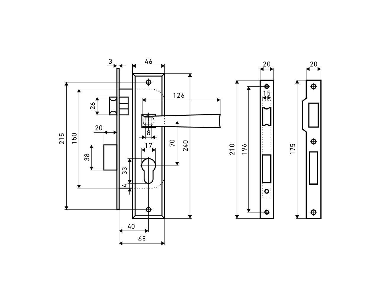 Серия АРТ Замок врезной с ручками Предназначен для установки в деревянные двери толщиной от 30 до 40мм правого и левого открывания Дверь может быть закрыта на защелку и открыта с помощью фалевой ручки при открытом засове замка Прямоугольный ригель вылет 20мм Универсальная защелка Стальной корпус покрытие - полимерная краска Межосевое расстояние 70мм Удаление ключевого отверстия 40мм Материал ручек - сталь алюминий Гальваническое покрытие Комплектация: цилиндровый механизм 60мм материал ЦАМлатунь 5 ключей ответная планка винтовые стяжки