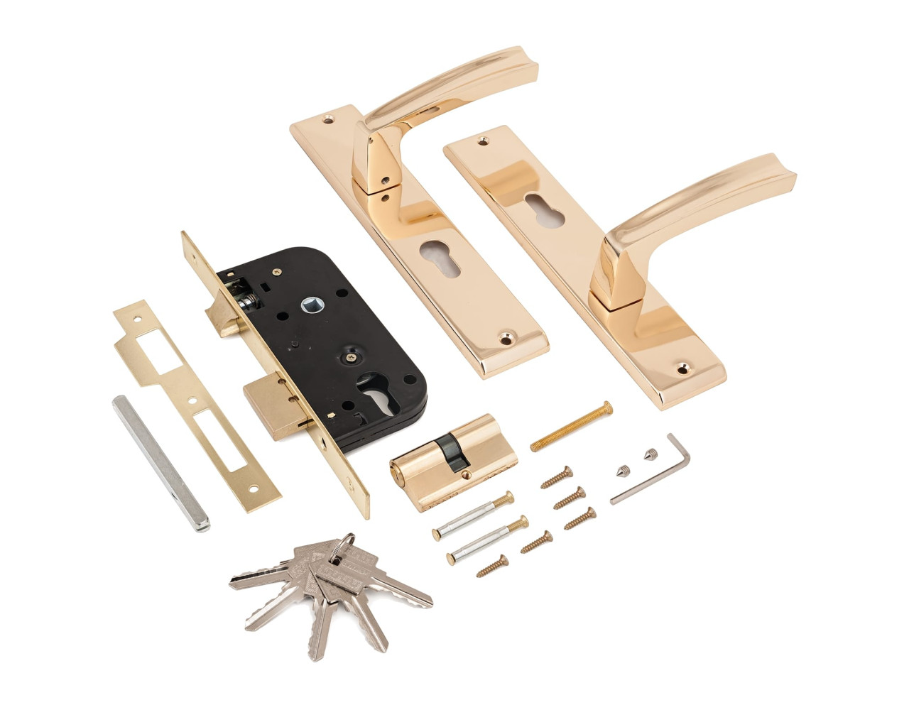 Серия «АРТ». Замок врезной с ручками. Предназначен для установки в деревянные двери толщиной от 30 до 40мм, правого и левого открывания. Дверь может быть закрыта на защелку и открыта с помощью фалевой ручки при открытом засове замка. Прямоугольный ригель, вылет 20мм. Универсальная защелка. Стальной корпус, покрытие - полимерная краска. Межосевое расстояние 70мм. Удаление ключевого отверстия 40мм. Материал ручек - сталь, алюминий. Гальваническое покрытие. Комплектация: цилиндровый механизм 60мм, материал ЦАМ/латунь, 5 ключей, ответная планка, винтовые стяжки.