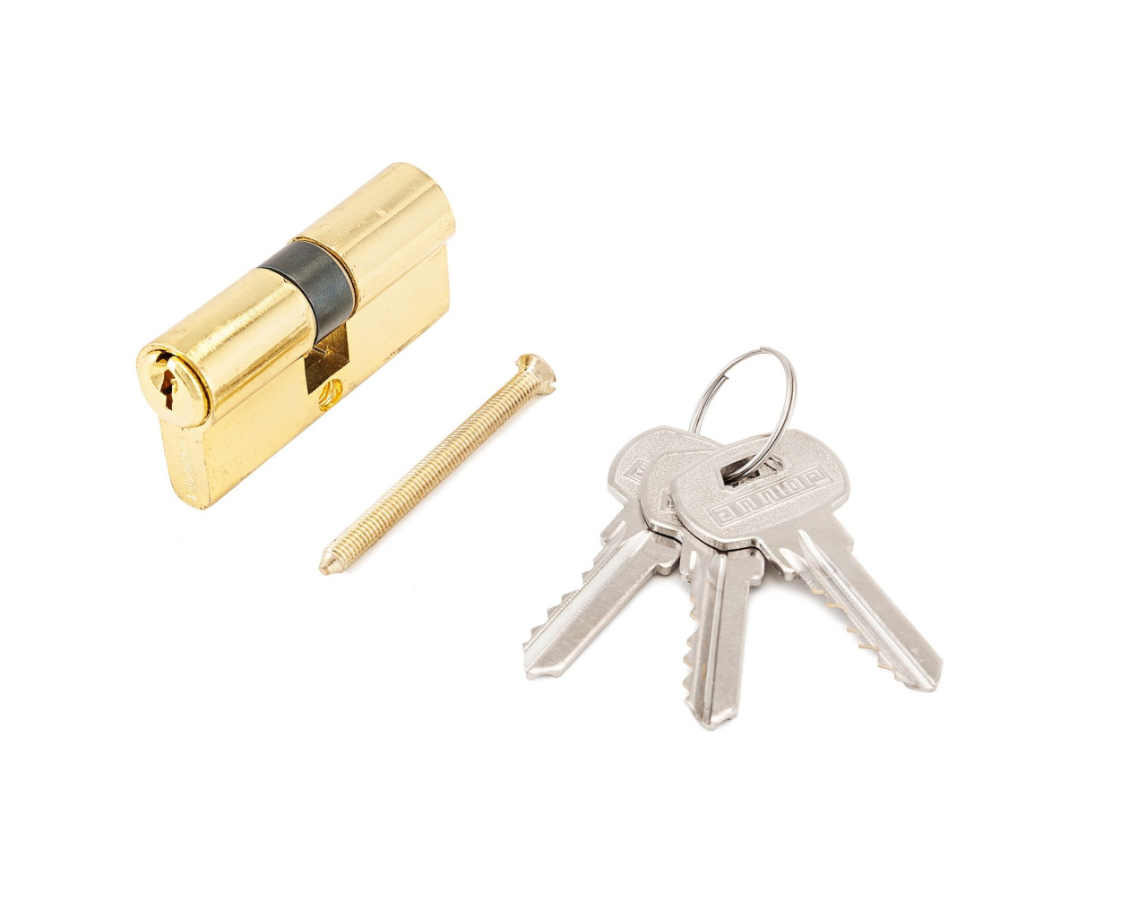 Механизм цилиндровый для врезных замков. Европрофиль. Английский ключ. Материал корпуса и ключей – латунь. Ключ-ключ. Механизм защищен стержнем от высверливания. Выступающий на 30 градусов из плоскости механизма кулачок защищает цилиндр от выбивания из двери. Длина механизма - 60 мм (25х10х25).