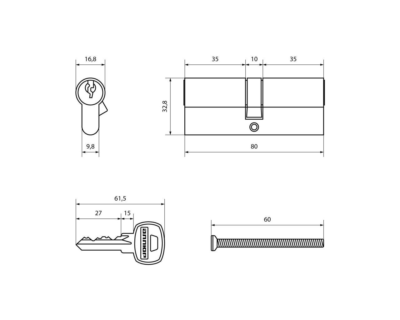 Механизм цилиндровый для врезных замков. Европрофиль. Английский ключ. Материал корпуса и ключей – латунь. Ключ-ключ. Механизм защищен стержнем от высверливания. Выступающий на 30 градусов из плоскости механизма кулачок защищает цилиндр от выбивания из двери. Длина механизма - 80 мм (35х10х35). ПРИ УСТАНОВКЕ НЕ ИСПОЛЬЗОВАТЬ ЭЛЕКТРО ИНСТРУМЕНТ!