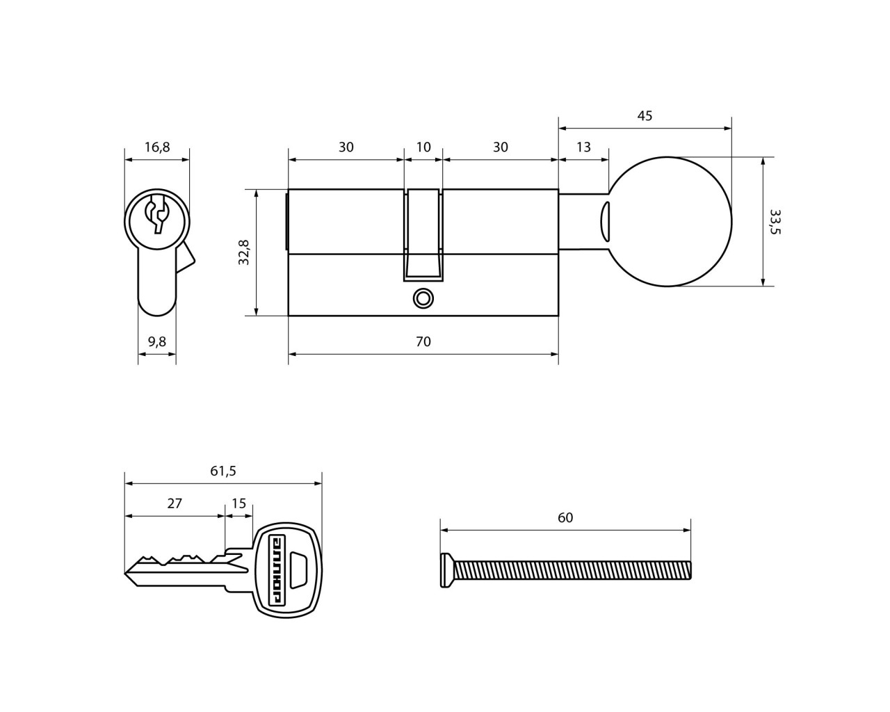 Механизм цилиндровый для врезных замков. Европрофиль. Английский ключ. Материал корпуса и ключей – латунь. Ключ-вертушка. Механизм защищен стержнем от высверливания. Выступающий на 30 градусов из плоскости механизма кулачок защищает цилиндр от выбивания из двери. Длина механизма - 70 мм (30х10х30). ПРИ УСТАНОВКЕ НЕ ИСПОЛЬЗОВАТЬ ЭЛЕКТРО ИНСТРУМЕНТ!