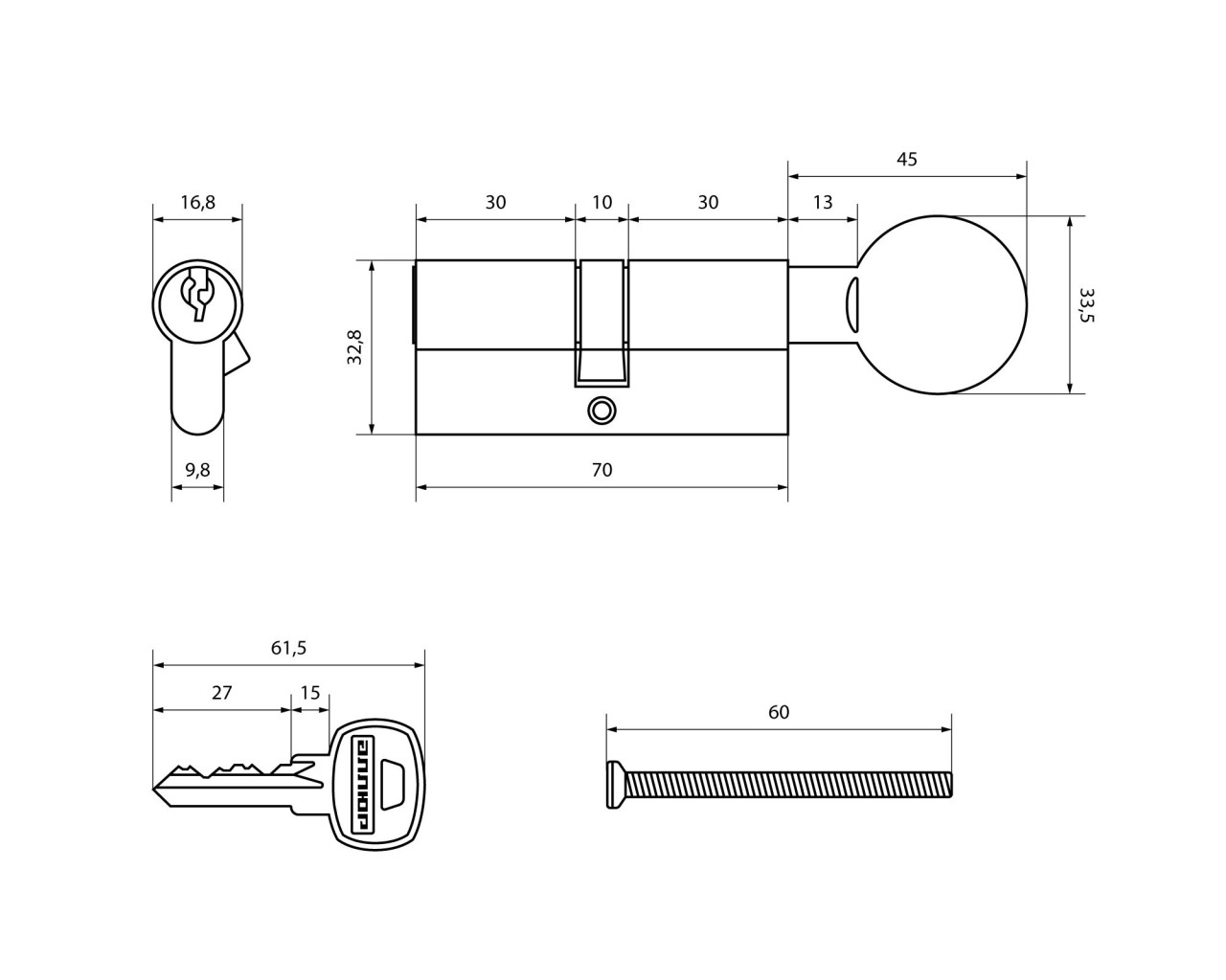Механизм цилиндровый для врезных замков. Европрофиль. Английский ключ. Материал корпуса и ключей – латунь. Ключ-вертушка. Механизм защищен стержнем от высверливания. Выступающий на 30 градусов из плоскости механизма кулачок защищает цилиндр от выбивания из двери. Длина механизма - 70 мм (30х10х30). ПРИ УСТАНОВКЕ НЕ ИСПОЛЬЗОВАТЬ ЭЛЕКТРО ИНСТРУМЕНТ!