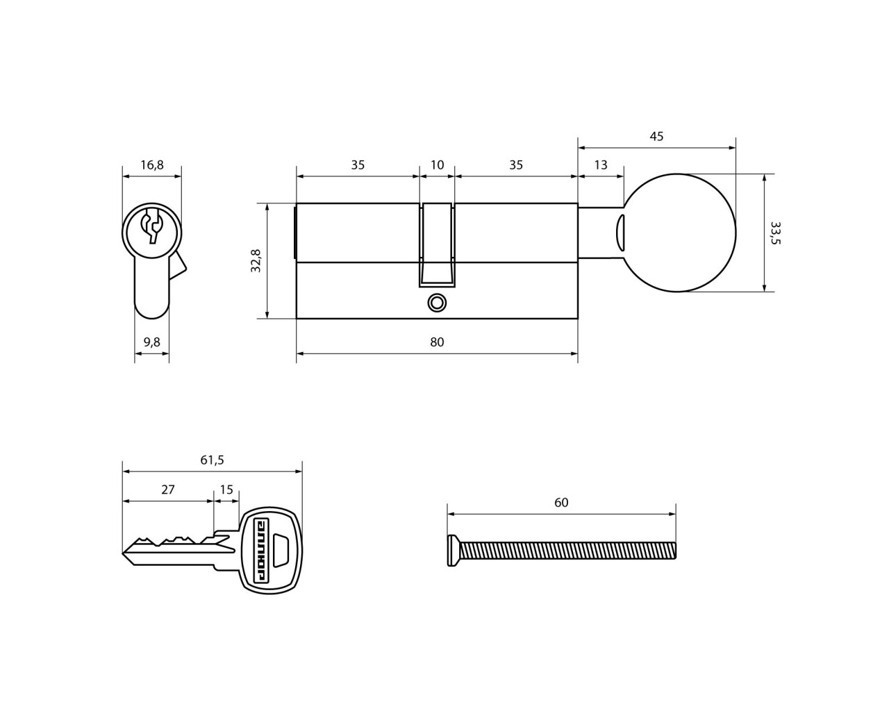 Механизм цилиндровый для врезных замков. Европрофиль. Английский ключ. Материал корпуса и ключей – латунь. Ключ-вертушка. Механизм защищен стержнем от высверливания. Выступающий на 30 градусов из плоскости механизма кулачок защищает цилиндр от выбивания из двери. Длина механизма - 80 мм (35х10х35). ПРИ УСТАНОВКЕ НЕ ИСПОЛЬЗОВАТЬ ЭЛЕКТРО ИНСТРУМЕНТ!