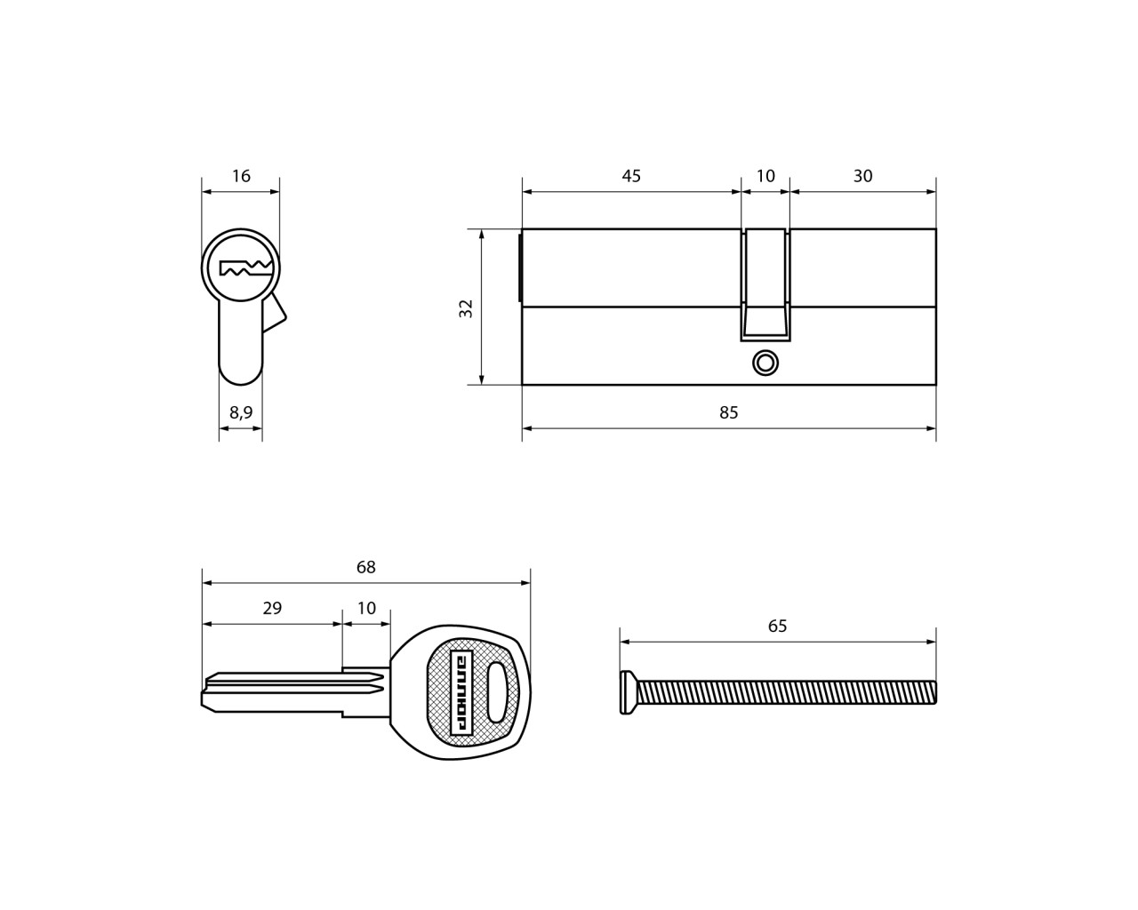 АЛЛЮР Цилиндр механизм DL-01 85 (30-10-45) BP перекод перфокл 4640001798597