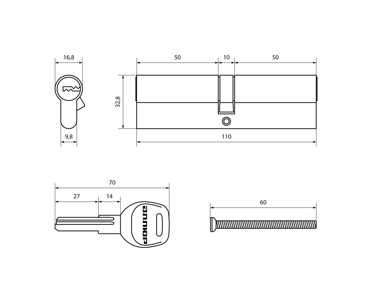 Механизм цилиндровый для врезных замков с 6 пинами секретности. Европрофиль. Перфо-ключ. Материал корпуса и ротора – латунь. Ключ-латунный, с эргономичной пластиковой головкой. Ключ-ключ. Длина механизма - 110 мм (50х10х50). 45000 секретных комбинаций ключа. Механизм защищен от высверливания, вскрытия бампингом и отмычками. Выступающий на 30 градусов из плоскости механизма кулачок защищает цилиндр от выбивания из двери. ПРИ УСТАНОВКЕ НЕ ИСПОЛЬЗОВАТЬ ЭЛЕКТРО ИНСТРУМЕНТ!