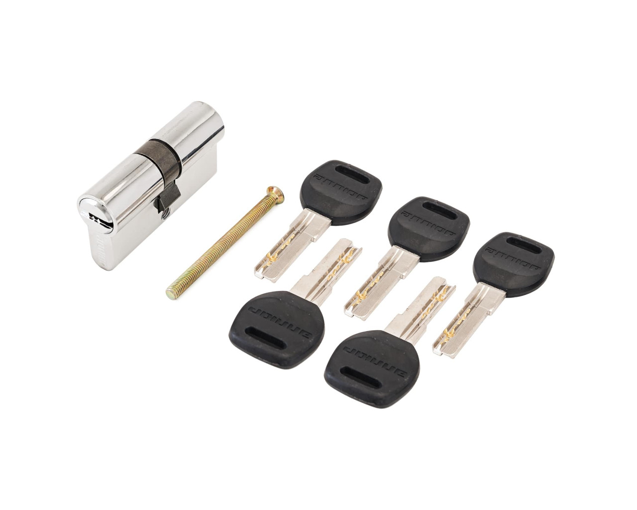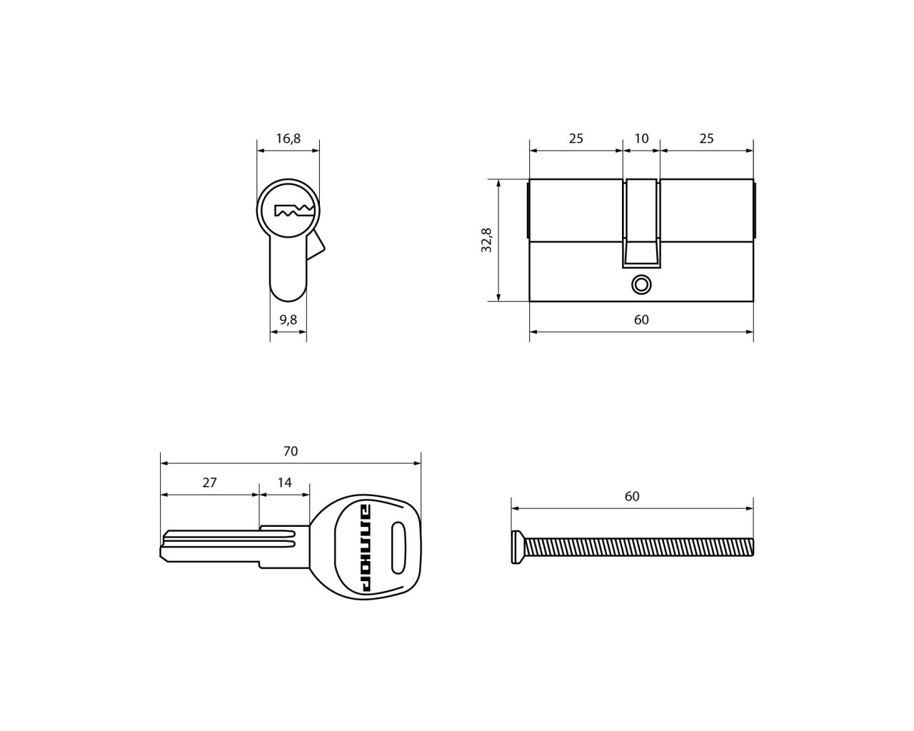 Механизм цилиндровый для врезных замков с 6 пинами секретности. Европрофиль. Перфо-ключ. Материал корпуса и ротора – латунь. Ключ-латунный, с эргономичной пластиковой головкой. Ключ-ключ. Длина механизма -60 мм (25х10х25). 45000 секретных комбинаций ключа. Механизм защищен от высверливания, вскрытия бампингом и отмычками. Выступающий на 30 градусов из плоскости механизма кулачок защищает цилиндр от выбивания из двери. ПРИ УСТАНОВКЕ НЕ ИСПОЛЬЗОВАТЬ ЭЛЕКТРО ИНСТРУМЕНТ!