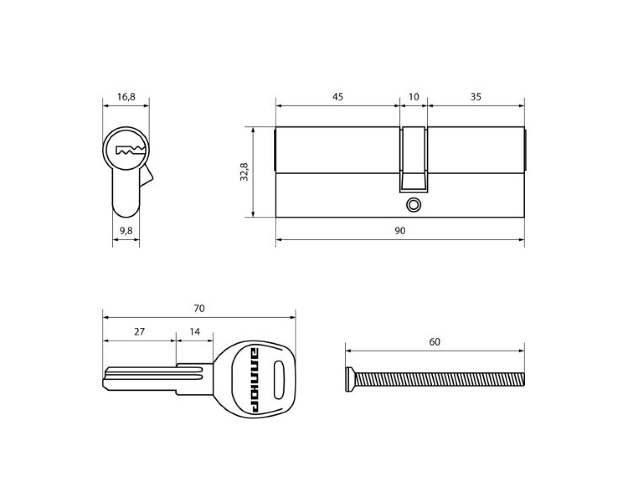 Механизм цилиндровый для врезных замков с 6 пинами секретности. Европрофиль. Перфо-ключ. Материал корпуса и ротора – латунь. Ключ-латунный, с эргономичной пластиковой головкой. Ключ-ключ. Длина механизма - 90 мм (35х10х45). 45000 секретных комбинаций ключа. Механизм защищен от высверливания, вскрытия бампингом и отмычками. Выступающий на 30 градусов из плоскости механизма кулачок защищает цилиндр от выбивания из двери. ПРИ УСТАНОВКЕ НЕ ИСПОЛЬЗОВАТЬ ЭЛЕКТРО ИНСТРУМЕНТ!