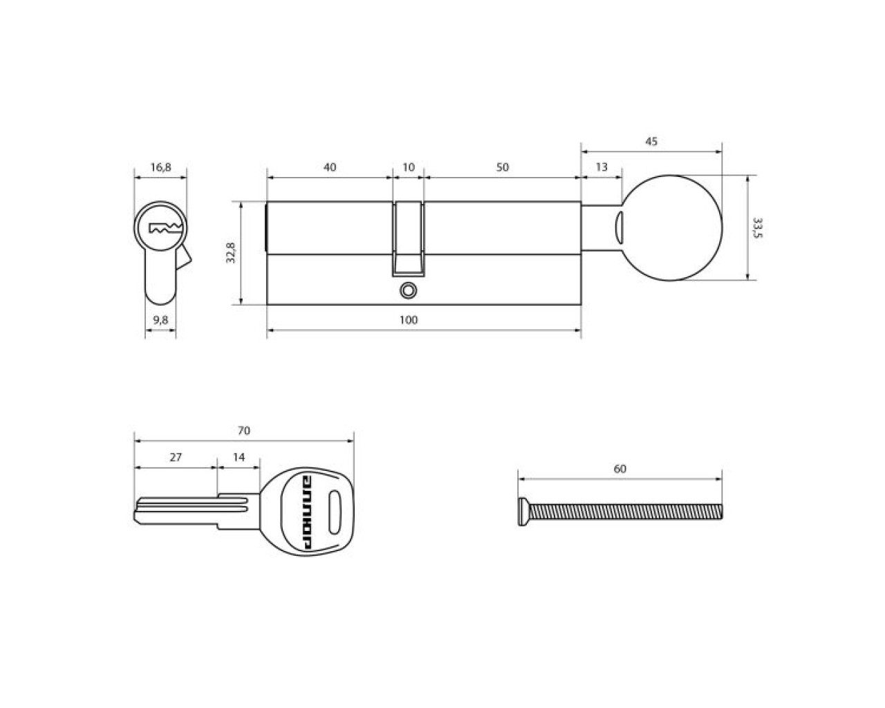 Механизм цилиндровый для врезных замков с 6 пинами секретности. Европрофиль. Перфо-ключ. Материал корпуса и ротора – латунь. Ключ-латунный, с эргономичной пластиковой головкой. Ключ-вертушка. Длина механизма - 100 мм (40 х10х50вертушка). 45000 секретных комбинаций ключа. Механизм защищен от высверливания, вскрытия бампингом и отмычками. Выступающий на 30 градусов из плоскости механизма кулачок защищает цилиндр от выбивания из двери. ПРИ УСТАНОВКЕ НЕ ИСПОЛЬЗОВАТЬ ЭЛЕКТРО ИНСТРУМЕНТ!