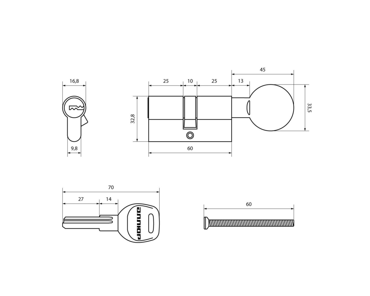 Механизм цилиндровый для врезных замков с 6 пинами секретности. Европрофиль. Перфо-ключ. Материал корпуса и ротора – латунь. Ключ-латунный, с эргономичной пластиковой головкой. Ключ-вертушка. Длина механизма - 60 мм (25вертушка х10х25). 45000 секретных комбинаций ключа. Механизм защищен от высверливания, вскрытия бампингом и отмычками. Выступающий на 30 градусов из плоскости механизма кулачок защищает цилиндр от выбивания из двери. ПРИ УСТАНОВКЕ НЕ ИСПОЛЬЗОВАТЬ ЭЛЕКТРО ИНСТРУМЕНТ!