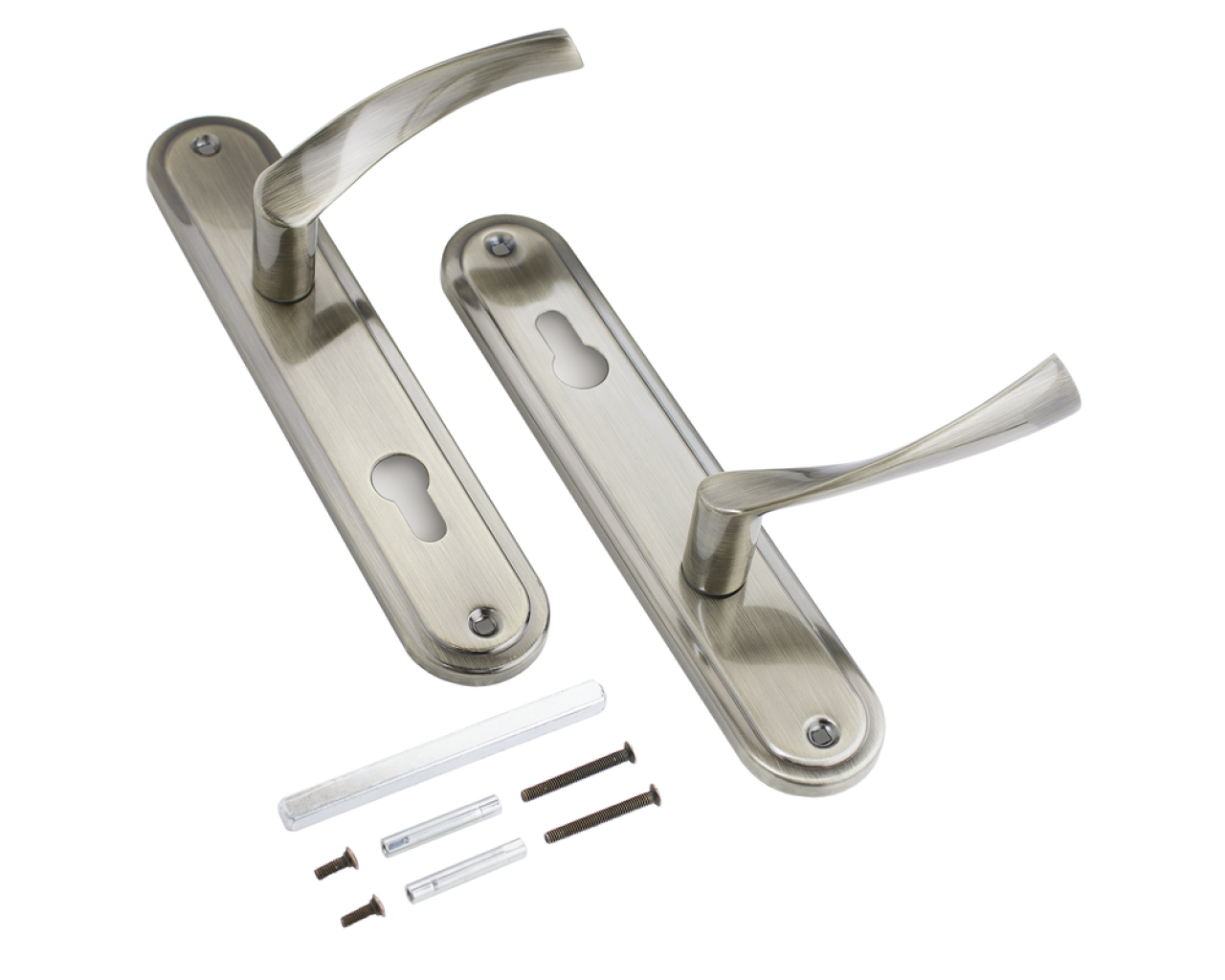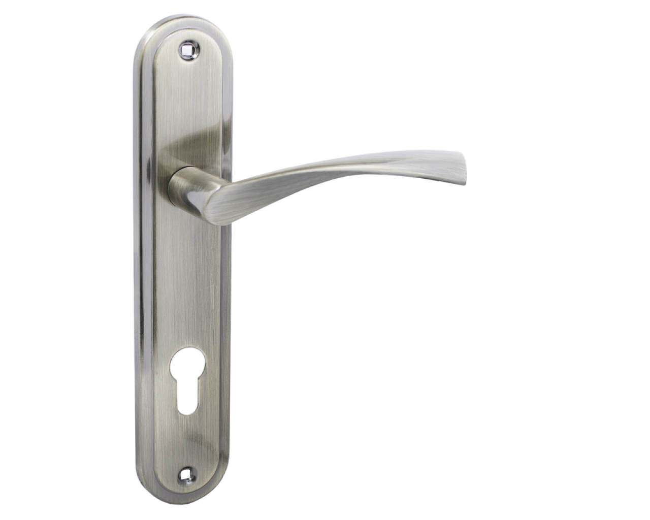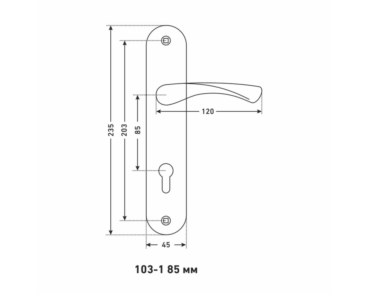 Ручка на планке под замок и цилиндровый механизм Материал - алюминиевый сплав гальваническое покрытие Межосевое расстояние - 85 мм размеры планки - 45 х 235 мм длина ручки - 120 мм В комплект входят винтовые стяжки и квадратный штырь 8х8 мм 105 мм Для дверей толщиной 35-45 мм