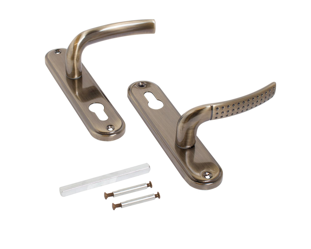 Ручка на планке под замок и цилиндровый механизм. Материал - алюминиевый сплав, гальваническое покрытие. Межосевое расстояние - 70 мм, размеры планки - 40х185 мм, длина ручки - 120 мм. В комплект входят винтовые стяжки и квадратный штырь (8х8 мм) 105 мм.