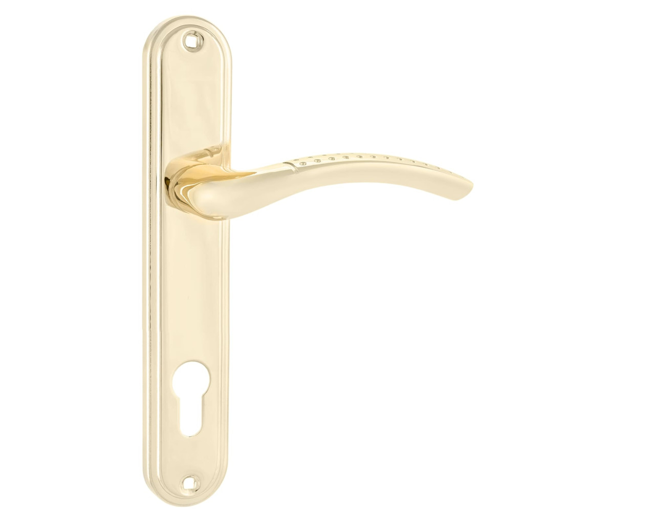 Ручка на планке под замок и цилиндровый механизм. Материал - алюминиевый сплав, покрытие - полимерная краска. Межосевое расстояние - 85 мм, размеры планки - 45 х 235 мм, длина ручки - 120 мм. В комплект входят винтовые стяжки и квадратный штырь (8х8 мм) 105 мм. Для дверей, толщиной 35-45 мм.