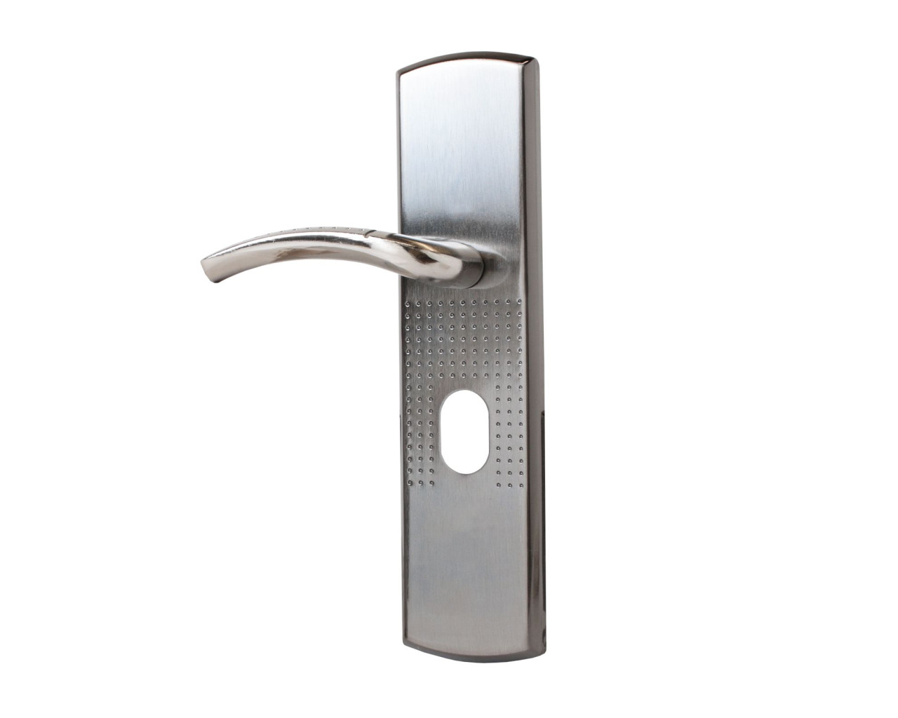 Ручка на планке под цилиндровый механизм. Предназначены для китайских металлических дверей, Подходят для замков автоматического и не автоматического закрывания. Материал планки - сталь, толщиной 1,1мм, ручки - алюминиевый сплав. Гальваническое покрытие. Межосевое расстояние - 68 мм, размеры планки - 70х275 мм, длина/высота ручки - 120/17 мм соответственно. Цвет ручек и планки - никель. В комплект входят две ручки, винтовые стяжки, пластиковые прокладки и квадратный штырь (8х8 мм) 110 мм, комплекты стержней для автоматических и не автоматических замков.