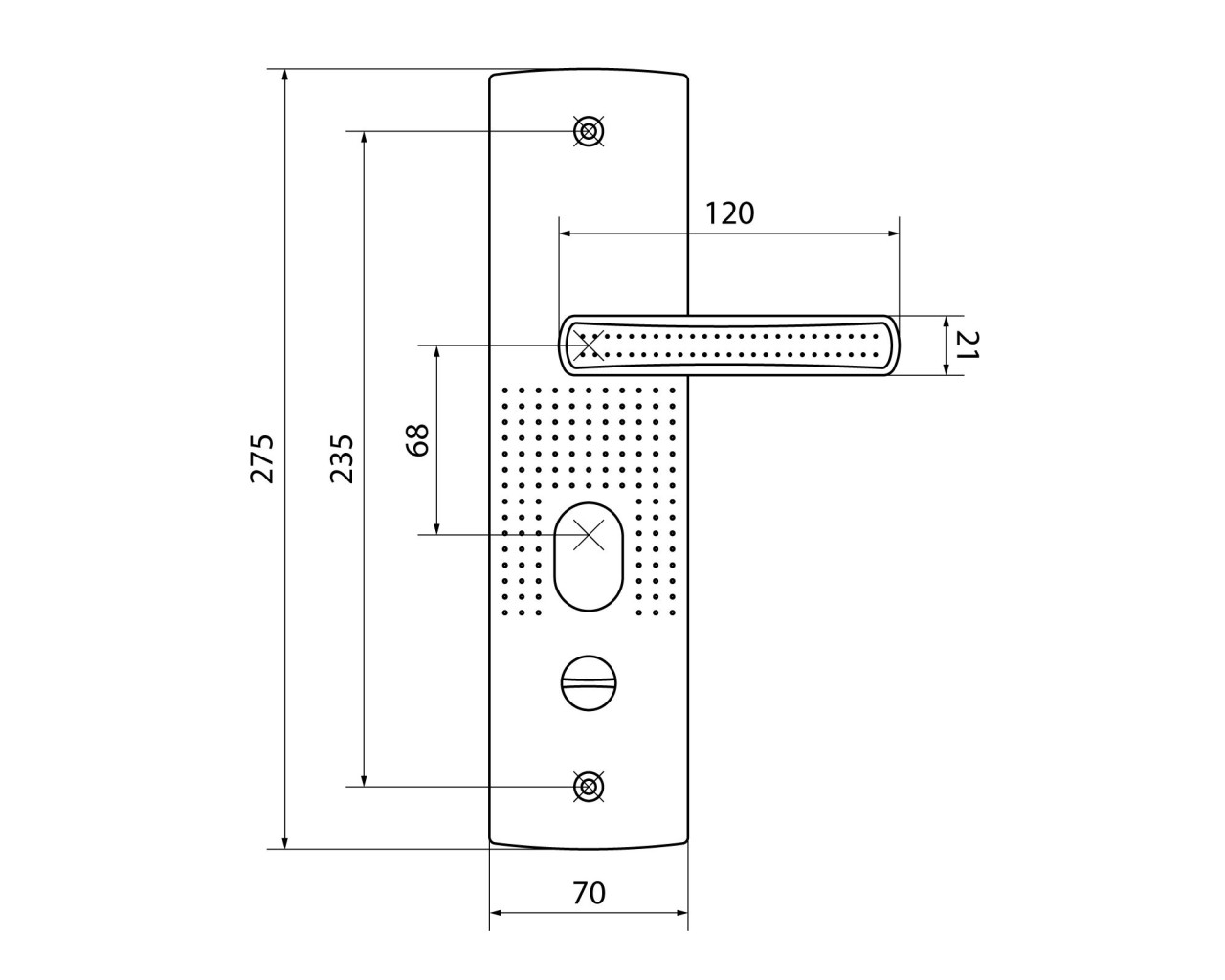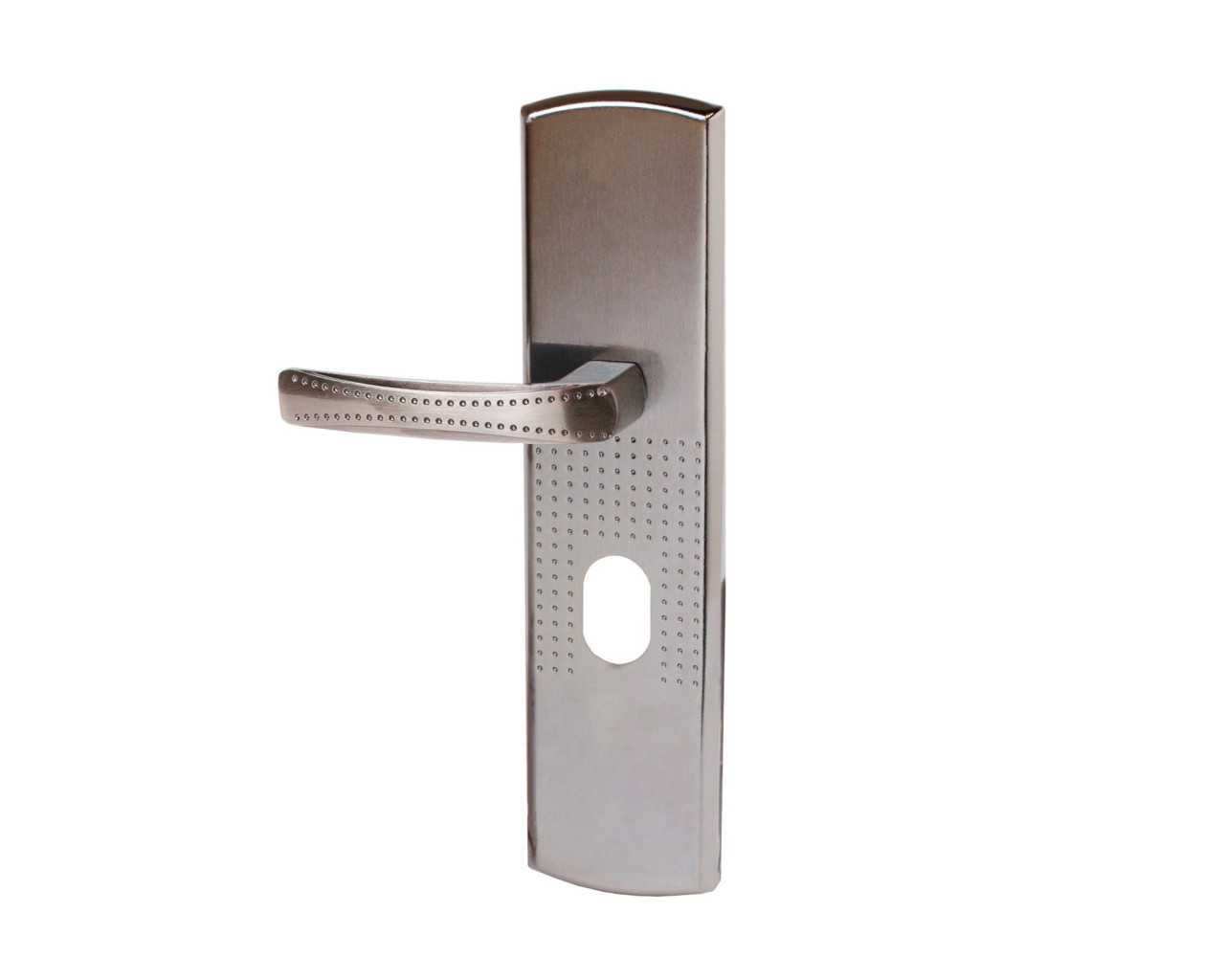 Ручка на планке под цилиндровый механизм. Предназначены для китайских металлических дверей, Подходят для замков автоматического и не автоматического закрывания. Материал - сталь, толщиной 1,1мм, гальваническое покрытие. Межосевое расстояние - 68 мм, размеры планки - 70х275 мм, длина/высота ручки - 120/21 мм соответственно. Цвет ручек и планки - никель. В комплект входят две ручки, винтовые стяжки, пластиковые прокладки и квадратный штырь (8х8 мм) 110 мм, комплекты стержней для автоматических и не автоматических замков. На наружней ручке имеется подсветка замочной скважины.
