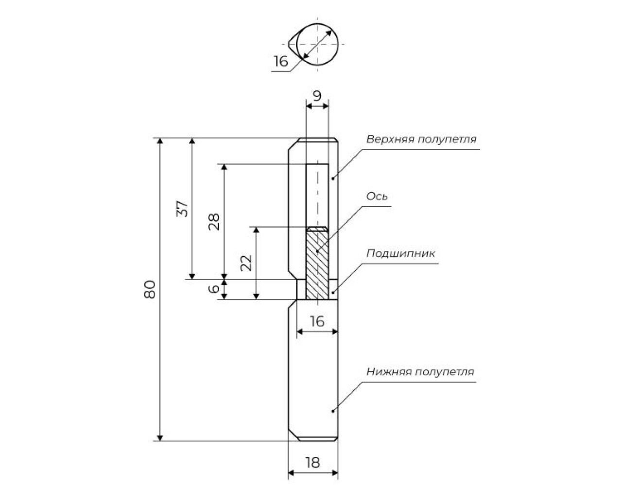 Аллюр Петля гаражная капл с подш под сварку 16*80 4660041986792