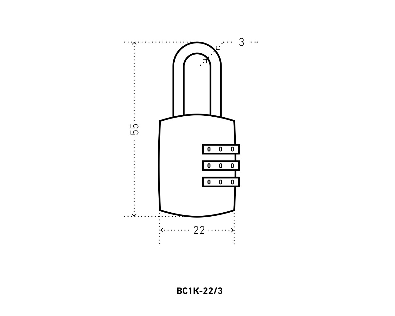 Замок кодовый. Предназначен для защиты от несанкционированного вскрытия сумок, чемоданов и др. багажа. Замок запирается дужкой диаметром 3 мм. Габариты замка - 55х22х10 мм. Диапазон цифр в каждом значении - от 0 до 9. Материал корпуса - цинковый сплав, дужки -сталь
