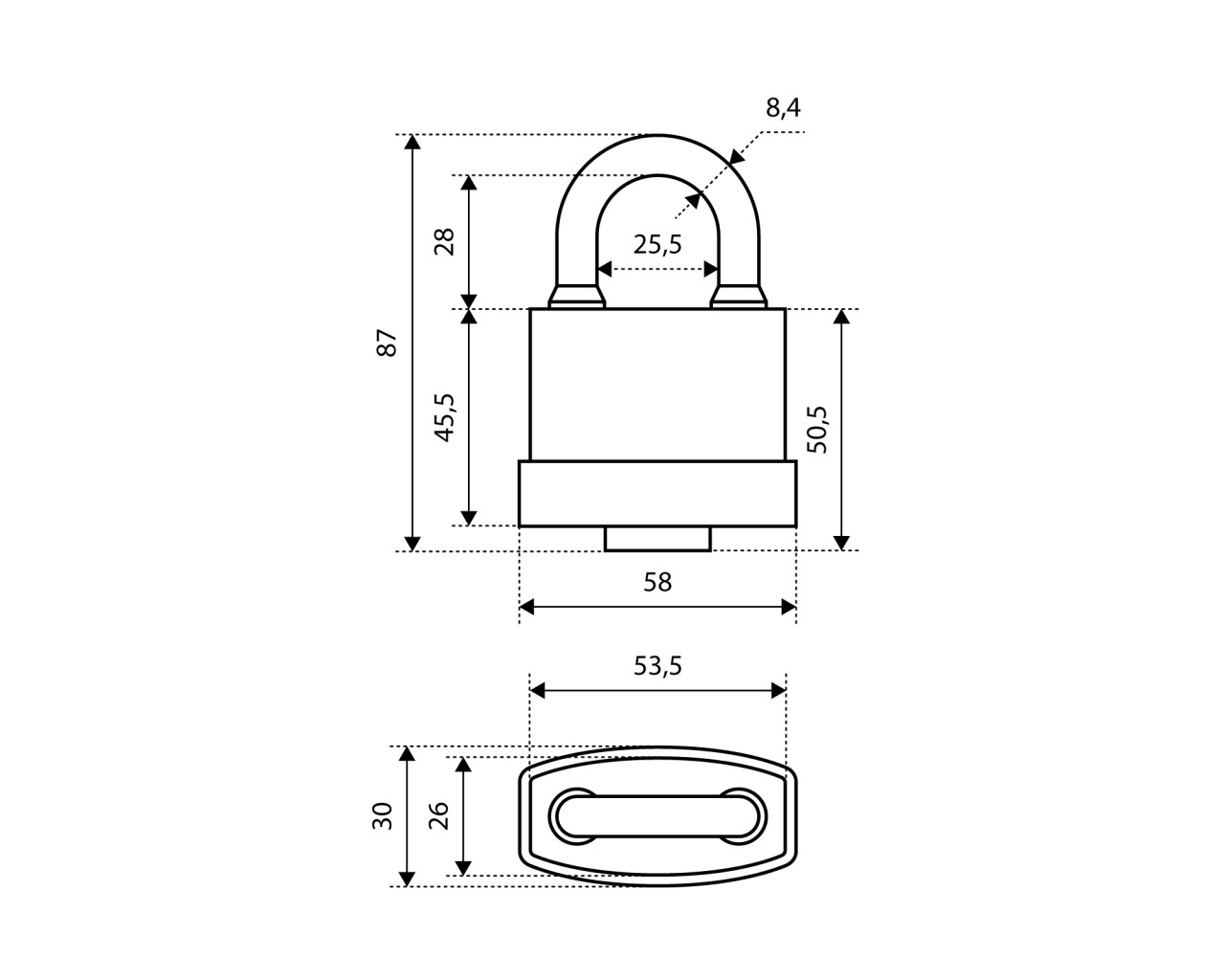 Серия замков «ПРЕСТИЖ». Замок навесной, всепогодный, с увеличенным количеством ключей. Автоматическое закрывание. Материал корпуса - высокопрочный чугун. Корпус замка и цилиндровый механизм имеют защитный пластиковый кожух. Размеры корпуса - 58ммх47мм, диаметр дужки - 8,5мм. Цилиндровый механизм секрета, 6 английских ключей с пластиковой головкой.