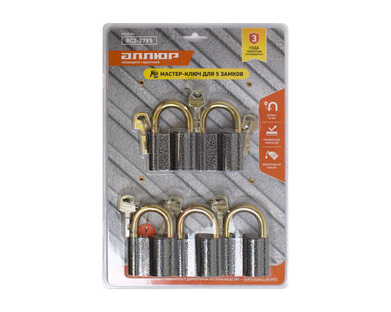 АЛЛЮР Замок навес ВС2-27-5 d10мм мастер ключ комп-5шт 4640001792090