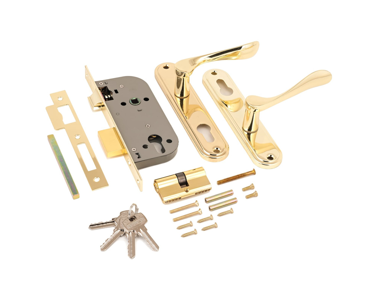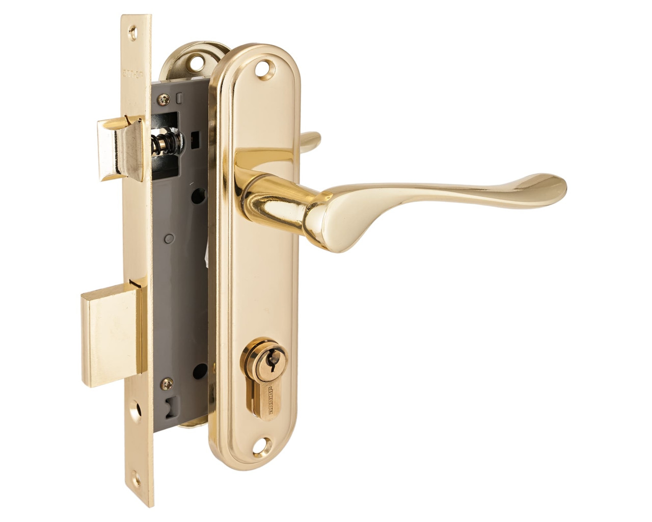 Замок врезной с комплектом ручек на планке. Предназначен для установки в деревянные двери толщиной 35 - 40 мм, правого и левого открывания. Материал ручки - алюминиевый сплав. Материал планки - сталь. Покрытие комплекта ручек: гальваническое, многослойное. Стальной корпус. Покрыт полимерной краской. Межосевое расстояние - 70 мм, бэксет - 40 мм. Комплектация: цинковый механизм с латунным ротором длиной 60 мм, секретность - 4500 комбинаций, 5 английских ключей, ответная планка, квадрат 8х8 мм, винтовые стяжки, саморезы. Класс замка по ГОСТ - 1.