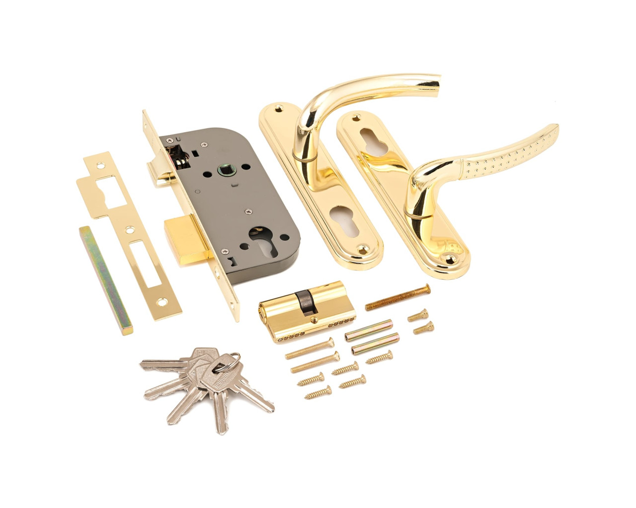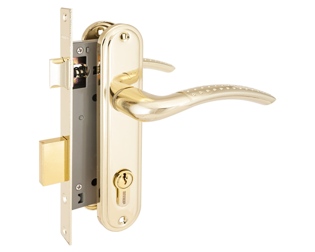 Замок врезной с комплектом ручек на планке. Предназначен для установки в деревянные двери толщиной 35 - 40 мм, правого и левого открывания. Материал ручки - алюминиевый сплав. Материал планки - сталь. Покрытие комплекта ручек: гальваническое, многослойное. Стальной корпус. Покрыт полимерной краской. Межосевое расстояние - 70 мм, бэксет - 40 мм. Комплектация: цинковый механизм с латунным ротором длиной 60 мм, секретность - 4500 комбинаций, 5 английских ключей, ответная планка, квадрат 8х8 мм, винтовые стяжки, саморезы. Класс замка по ГОСТ - 1.