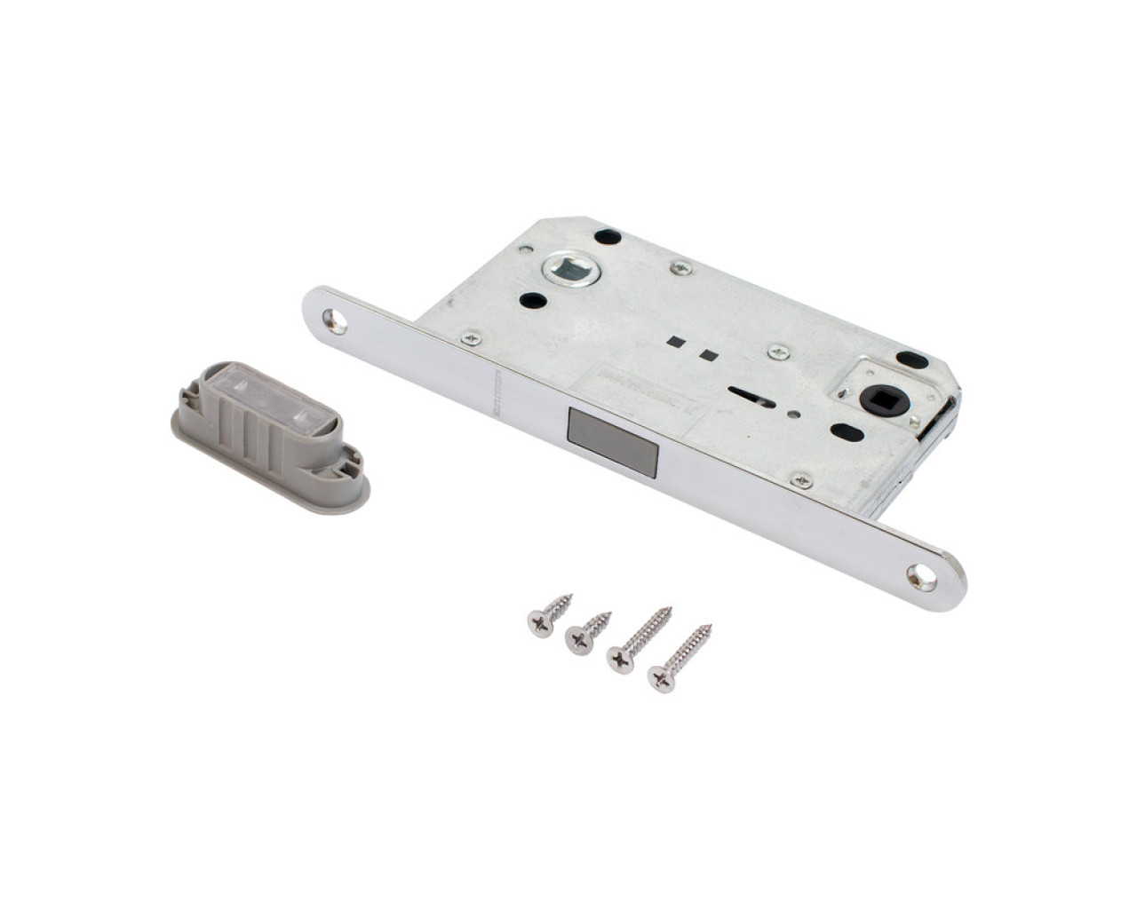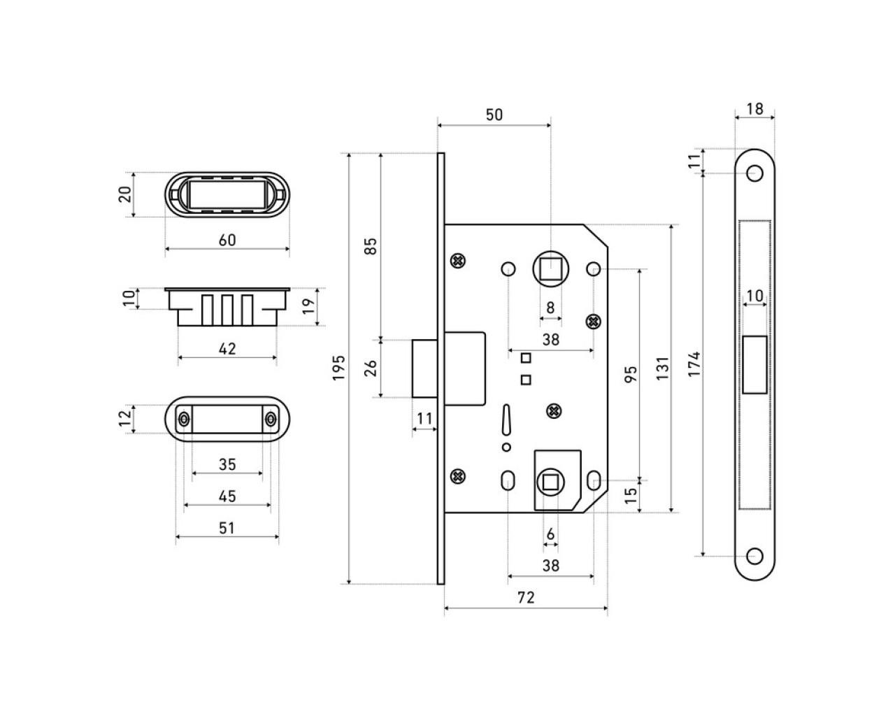 Универсальная магнитная защлка врезная для установки на деревянные межкомнатные двери Материал - сталь гальваническое покрытиеПод ручку с квадратом 8 мм и сантехническую завертку с квадратом 6 мм Удаление ключевого отверстия - 50 мм Межосевое расстояние - 96 мм Овальная торцевая планка для возможности установки с помощью автоматического инструмента Ширина планки - 18мм Габариты корпуса - 132х73х15 мм Засов из ударопрочного пластика