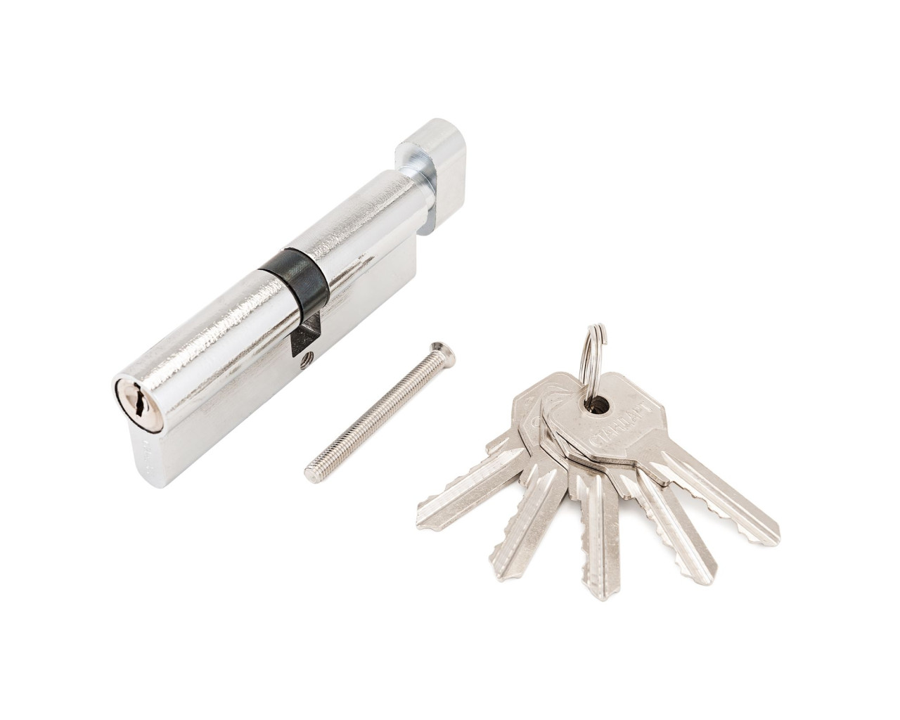Механизм цилиндровый для врезных замков Материал корпуса латунь гальваническое покрытие Ключ-вертушка Выступающий на 30 градусов из плоскости механизма кулачок защищает цилиндр от выбивания из двери Секретность - 15000 В комплекте 5 перфо-ключей