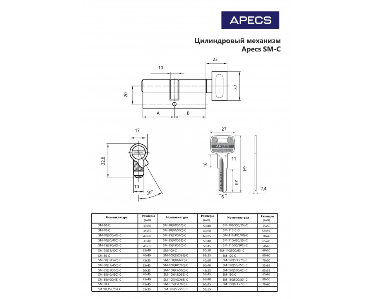 Апекс Цилиндр механизм SM-85(35С*50)-С-NI перф ключ/верт 4603869079727