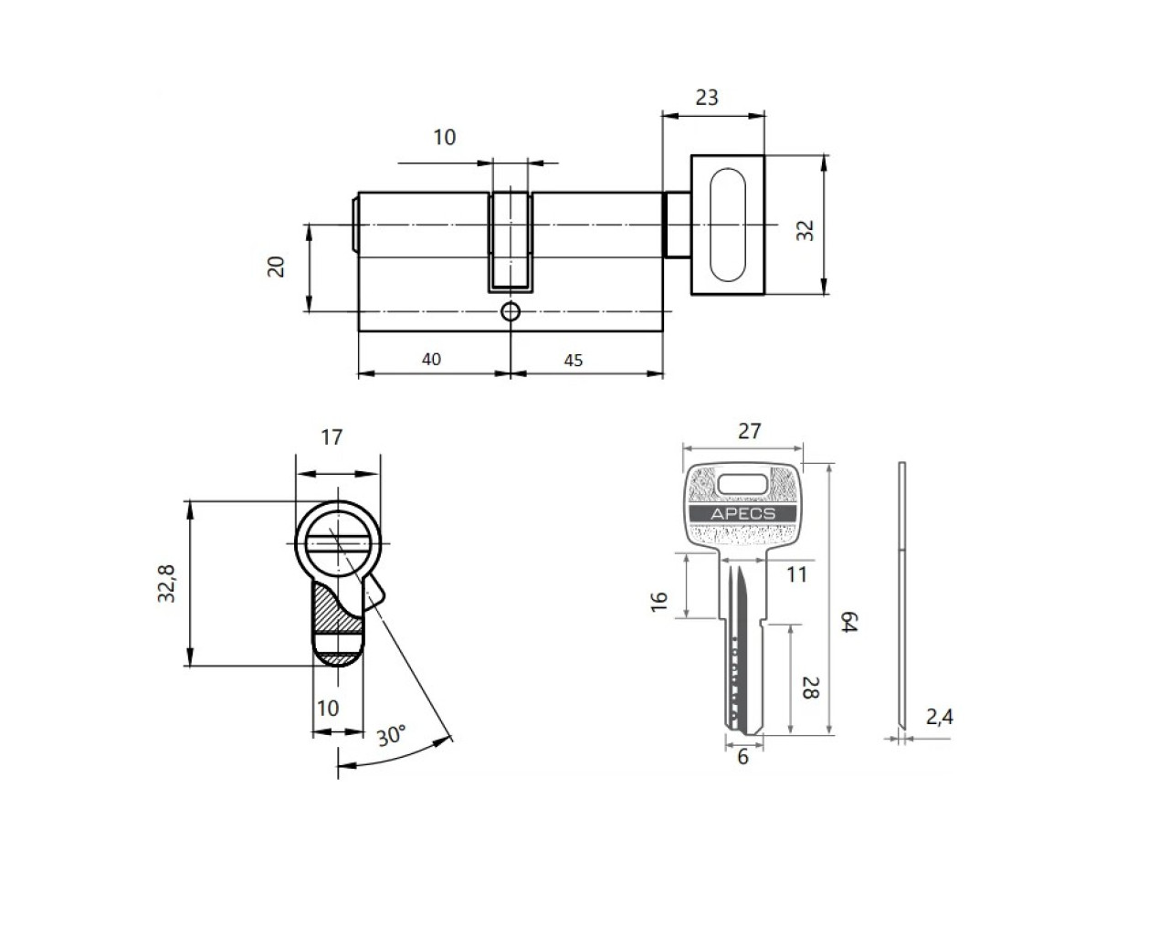 Апекс Цилиндр механизм SM-85(40*45С)-С-NI перф ключ/верт 4603869079741