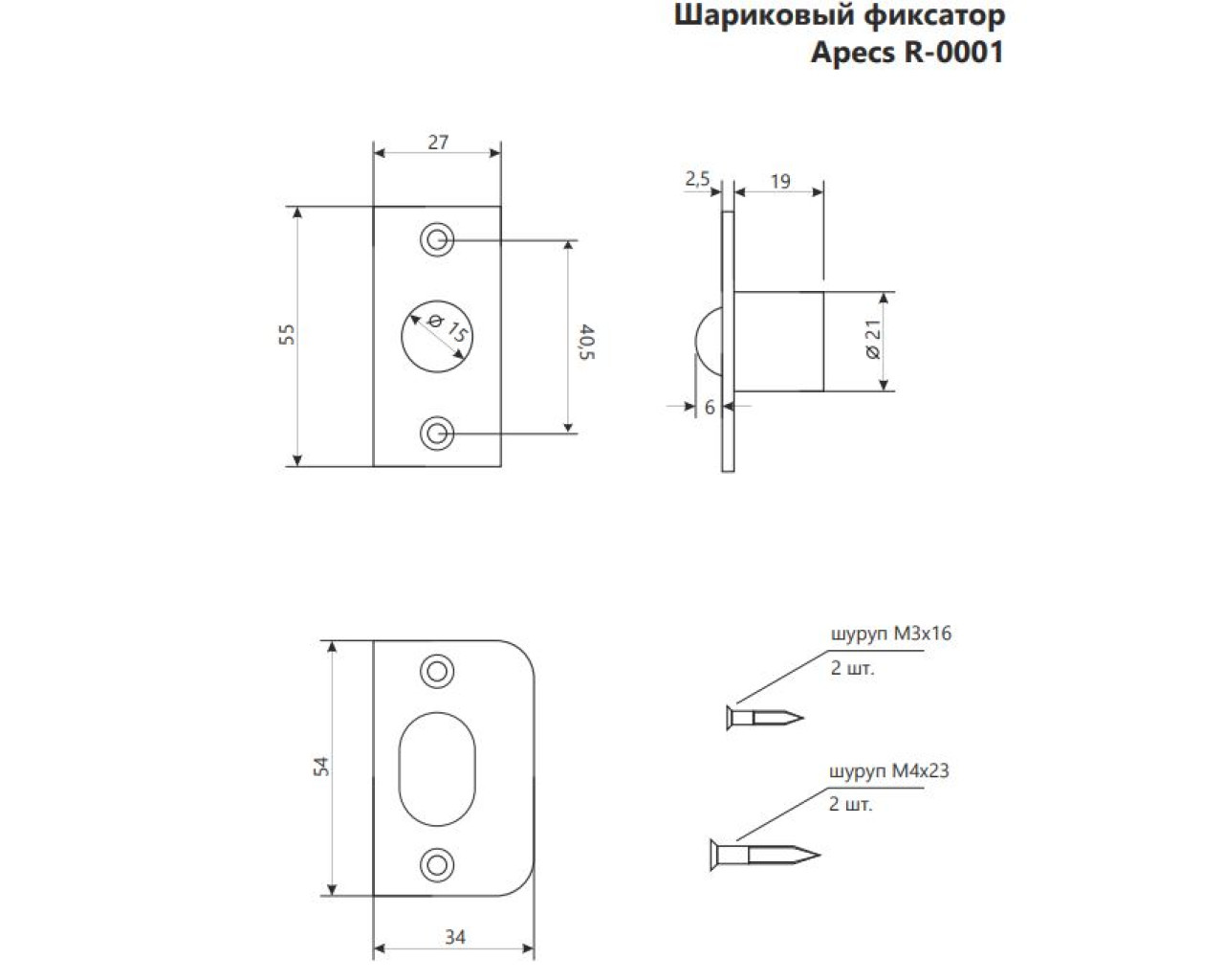 Апекс фиксатор шариковый R-0001 CR хром 4603869048006