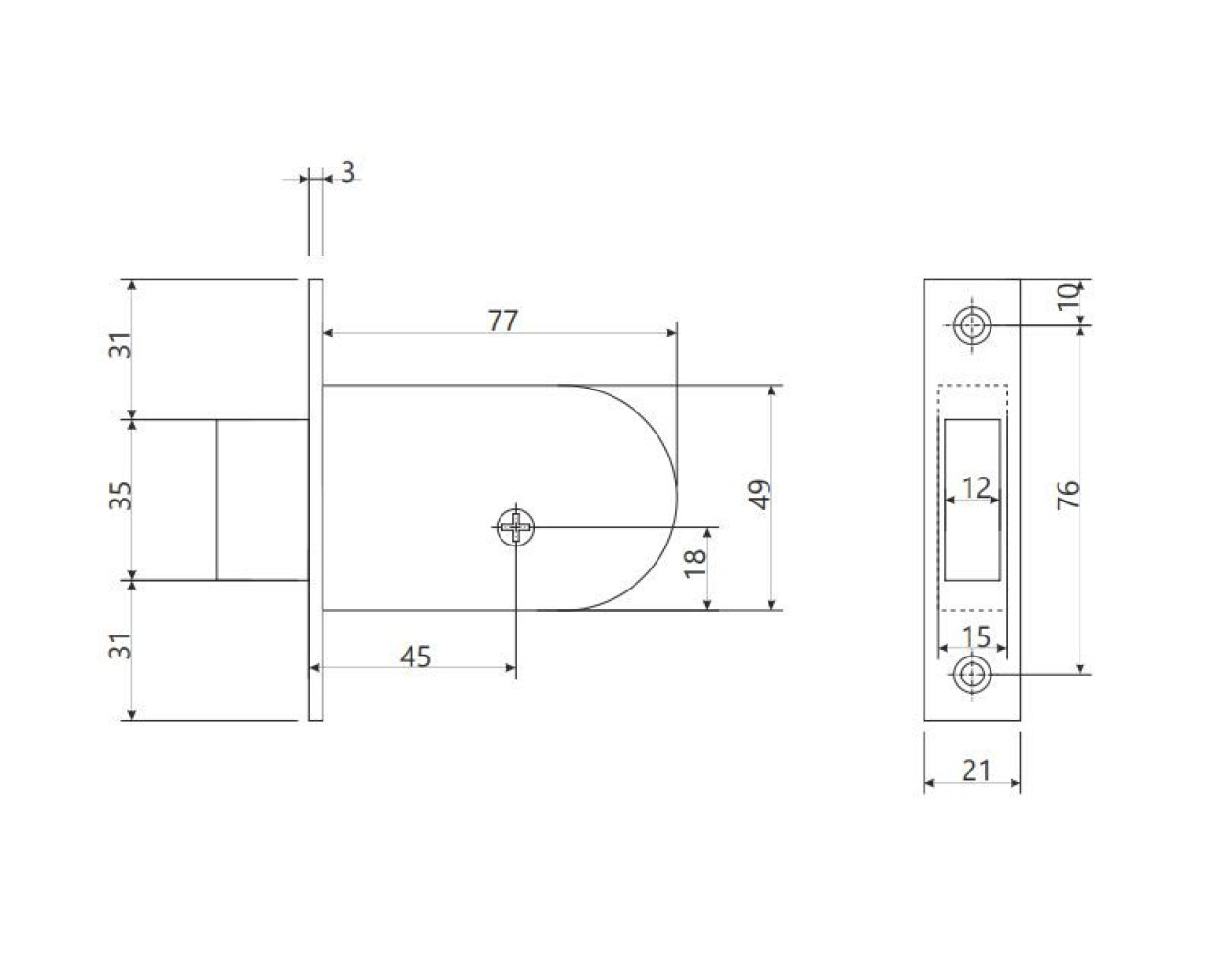 | Удаление ключевого отверстия | 45мм |