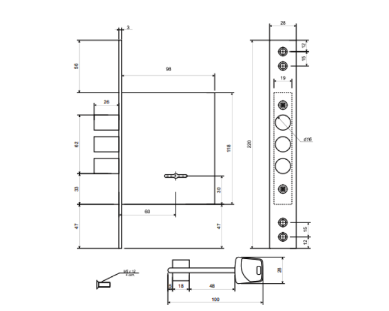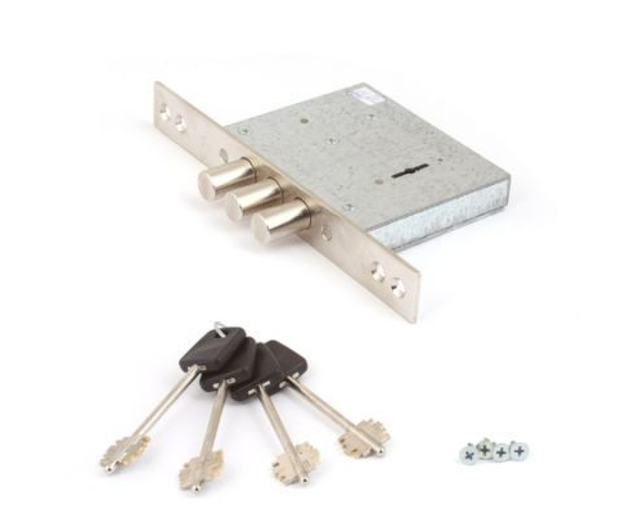 Технические характеристики: -Габаритные размеры - 98*118 -Тип упаковки -Коробка -Рекомендован для установки в входные двери -Да -Рекомендован для установки в межкомнатные двери - Нет -Тип крепления -Лицевая планка -Тип ригелей - Цилиндрические -Количество ригелей - 3 -Вылет ригелей -26 мм -Диаметр ригеля -16 мм -Удаление ключевого отверстия (Backset) -60 мм -Тип механизма секретности -Сувальдный с двойной бородкой -Количество сувальд -8 -Количество ключей -4 шт -Защелка - Отсутствует -Автоматическое запирание - Не автоматическое -Покрытие лицевой планки - Никель -Цвет лицевой планки - Хром -Защита от отмычек -Да -Защита от высверливания -Да -Защита от свертыша -Да