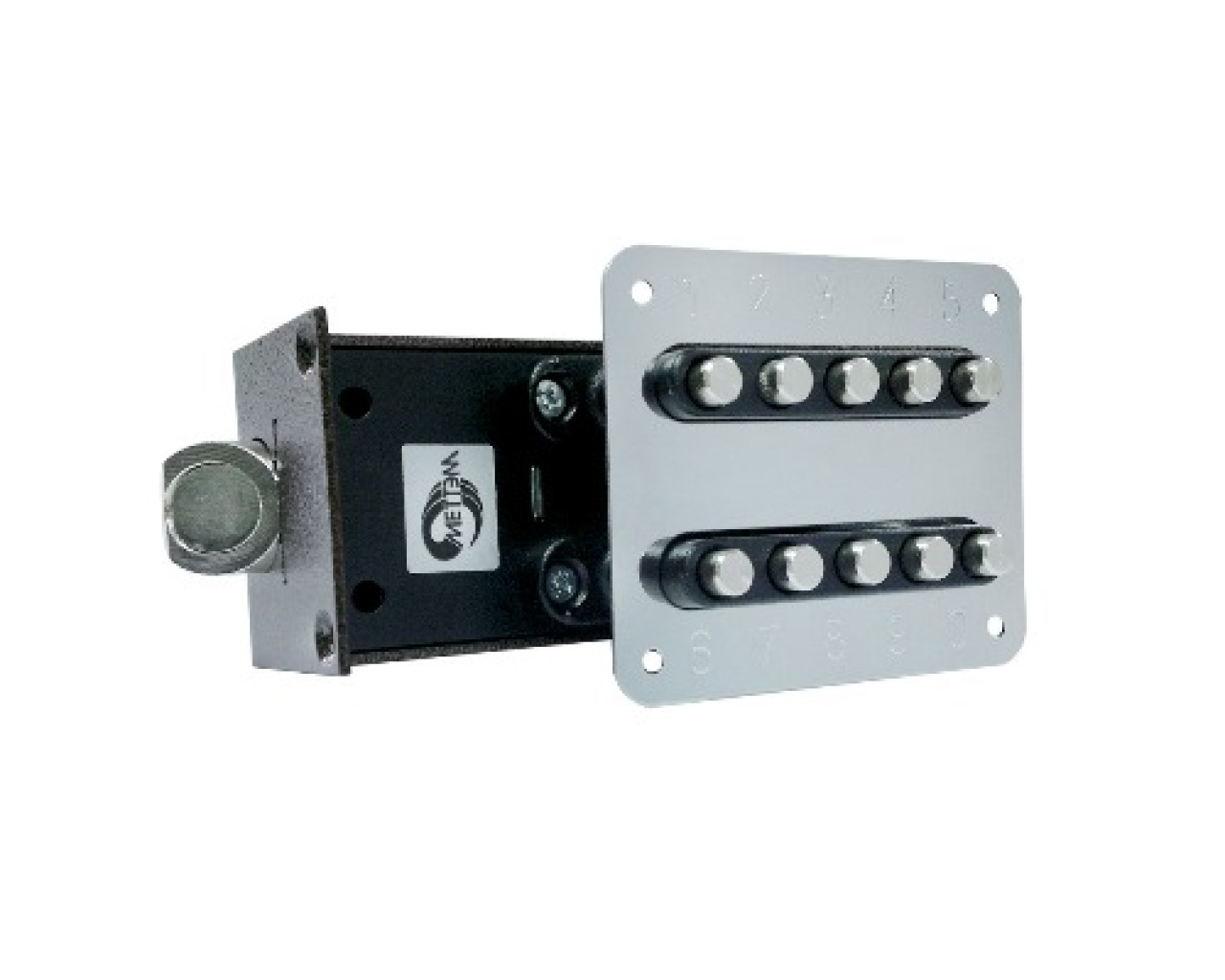 Замок-защелка кодовый. Предназначен для установки в металлические и деревянные двери толщиной от 36 до 45 мм. Засов-защелка диаметр 15 мм, с максимальным вылетом 15 мм. Габариты замка - 160х58х35 мм. Комплектация - кодовая накладка, запорная планка. Принцип работы: для отпирания замка снаружи необходимо одновременно нажать все закодированные кнопки; изнутри замок отпирается с помощью ручки. Количество возможных кодов - более 1000.