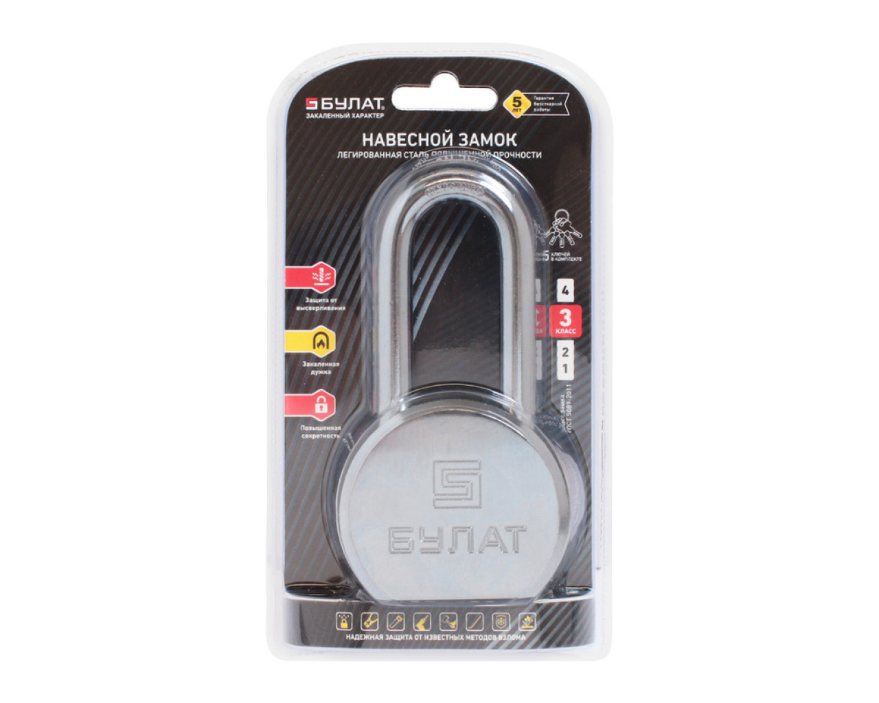 Булат Замок навес ВС6-Т65-01МХ (ВС1С-865Д) хром d10,5мм 5перф кл 4680143702861