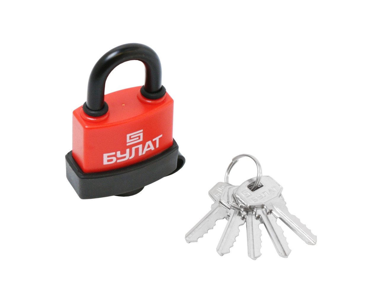 Замок навесной «БУЛАТ» предназначен для запирания, распределительных щитов, почтовых ящиков, гаражей, складов, подвалов и прочих помещений. Замок запирается автоматически при нажатии на скобу без использования ключа. Пластиковый кожух защищает замок от внешнего воздействия окружающей среды. Замок обладает длительным сроком эксплуатации. Гарантийный срок 5 лет с момента продажи через розничную сеть.