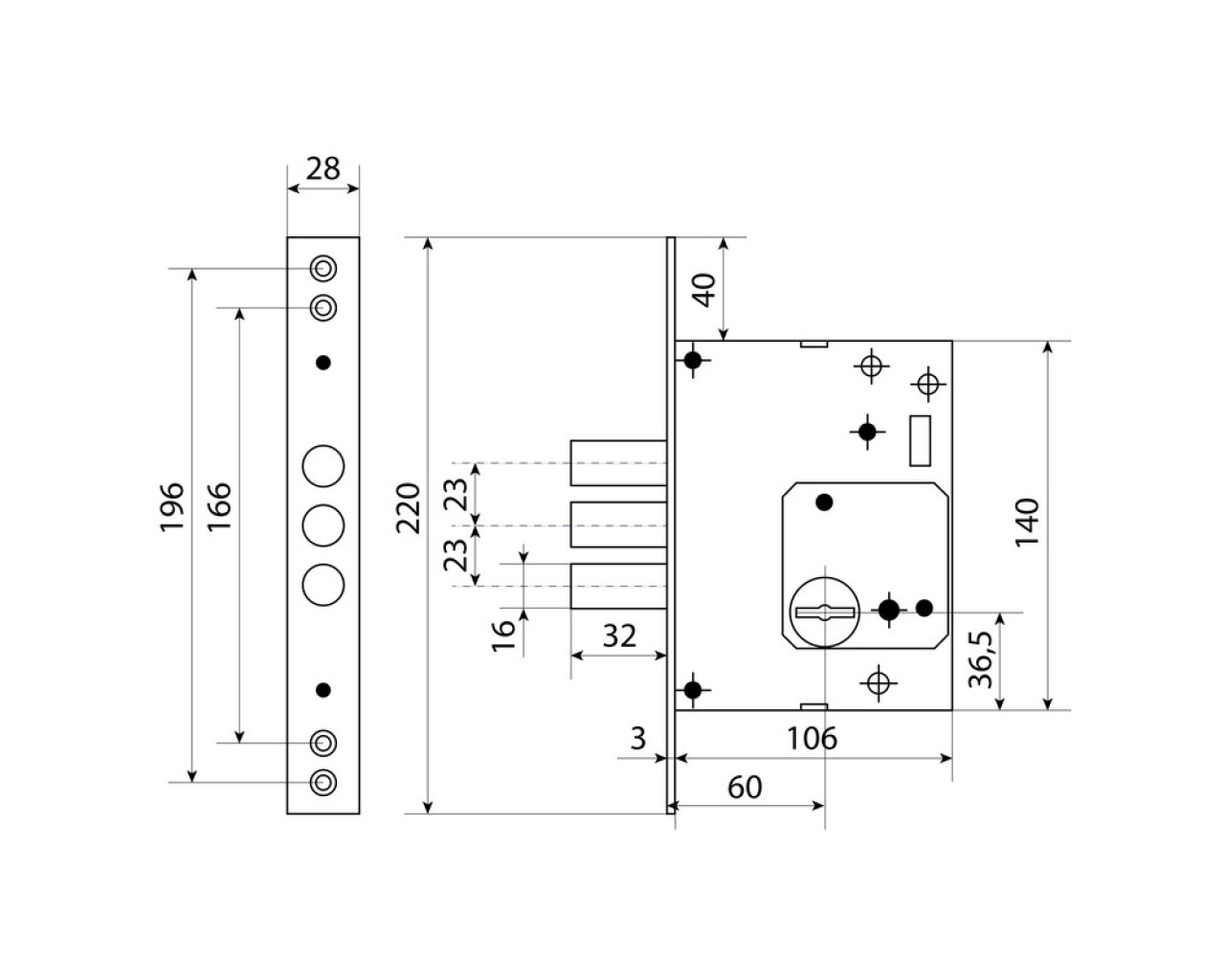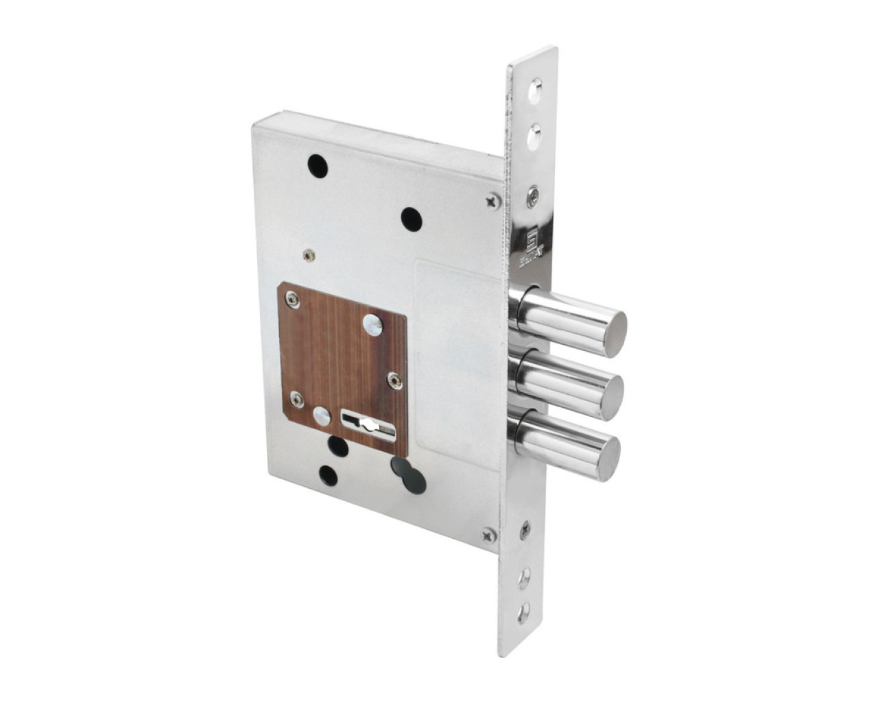 Замок врезной сувальдный Булат с тремя ригелями предназначен для установки во входные металлические двери Стальной оцинкованный корпус Закаленная пластина из стали с добавлением марганца от высверливания Универсальная установка подходит для левых и правых дверей Бэксет- 60мм Выход ригелей- 32мм Открывание-4 полуоборота Диаметр ригелей -16мм В комплект входят: 5 ключей с эргономичной пластиковой головкой для дверей толщиной 40-110мм крепежная фурнитура