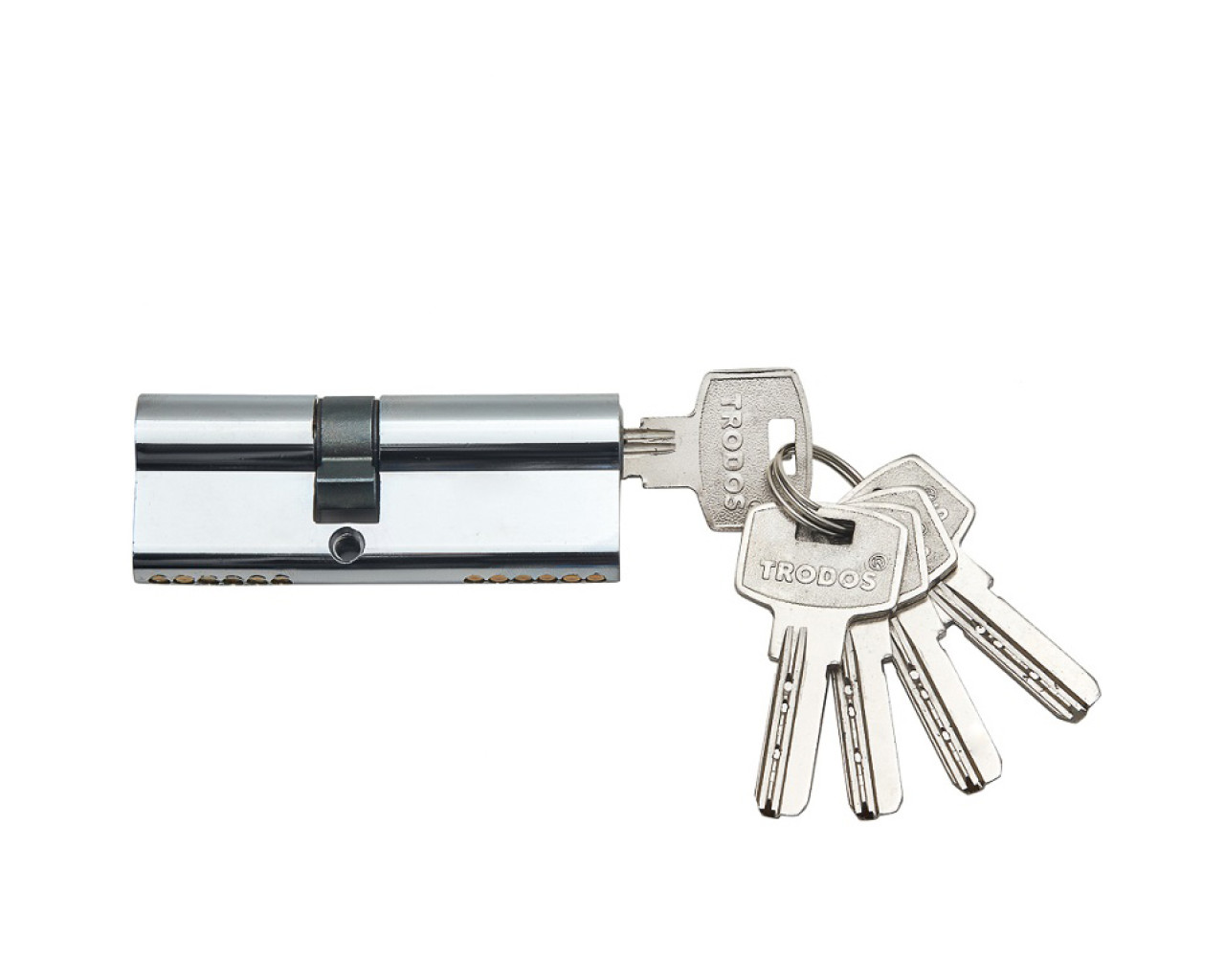 Цилиндр для межкомнатных и входных дверей Материал ЦАМ сплав цинка алюминия и меди В комплекте 5 стальных перфорированных ключей 5-6 пинов в зависимости от размера Цилиндр имеет вертушку для удобного запирания изнутри помещения без использования ключа Длину цилиндра подбирайте исходя из толщины двери с небольшим запасом под накладку