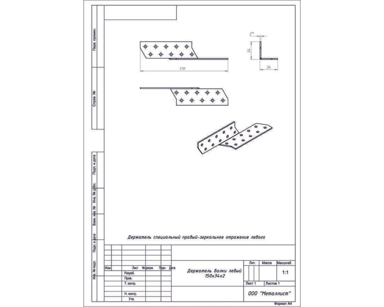 Держатель балки 150*34*2.0 цинк правый 60 14620004503929