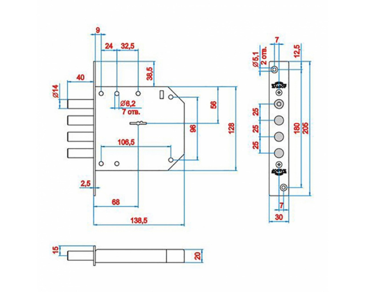 Замок врезной сувальдный для металлических дверей. Засов из четырех цилиндрических ригелей диаметром 14 мм, с максимальным вылетом 40 мм. Удаление ключевого отверстия 68 мм. Количество оборотов ключа - 4. Габариты замка - 138,5х128х20 мм. Комплектация - 5 ключей, съемная торцевая планка, комплект накладок. В одном из ригелей расположен закаленный стальной стержень, обеспечивающий надежную защиту от перепиливания. Защита от взлома, высверливания, выдавливания.