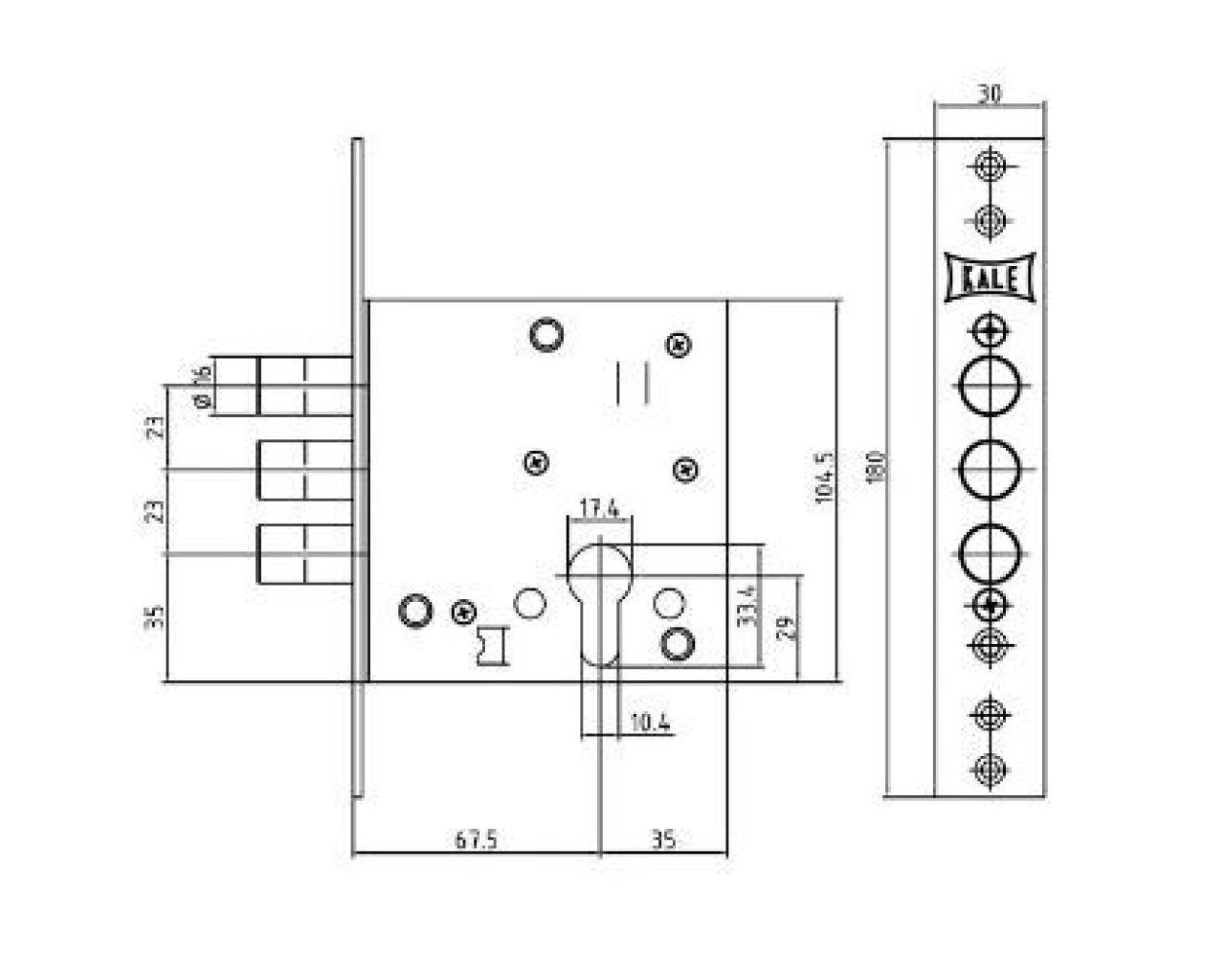 KALE Замок врез цилиндр 447WB хром бо бн без цм