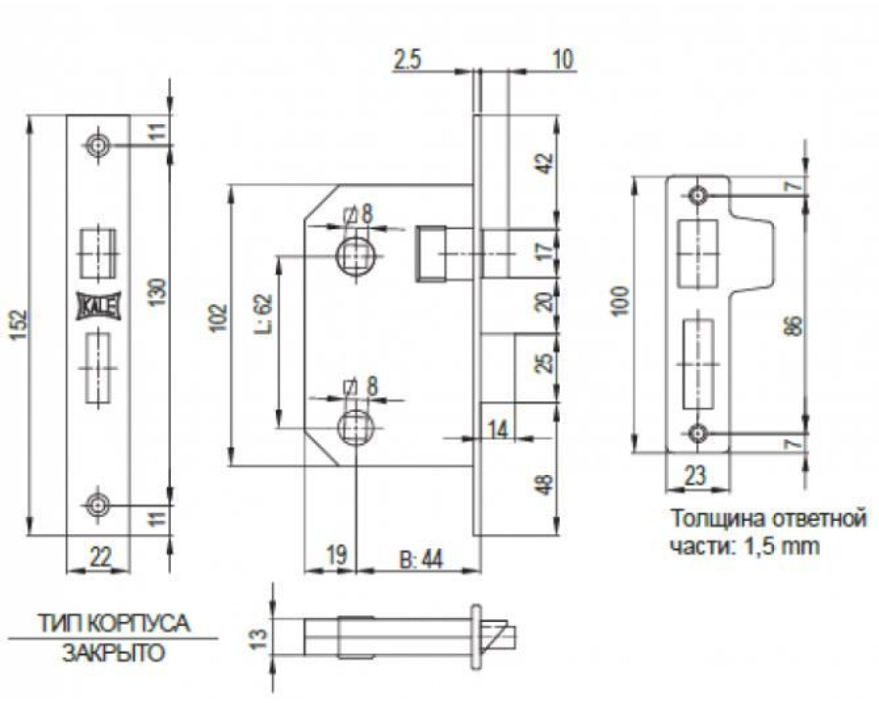 Kale Защелка под сантех 251WC 44мм никель мо62