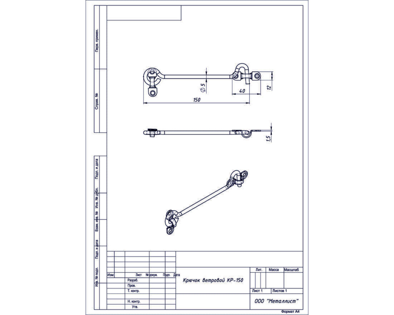 Крючок ветровой КР-150 цинк 14620004508307