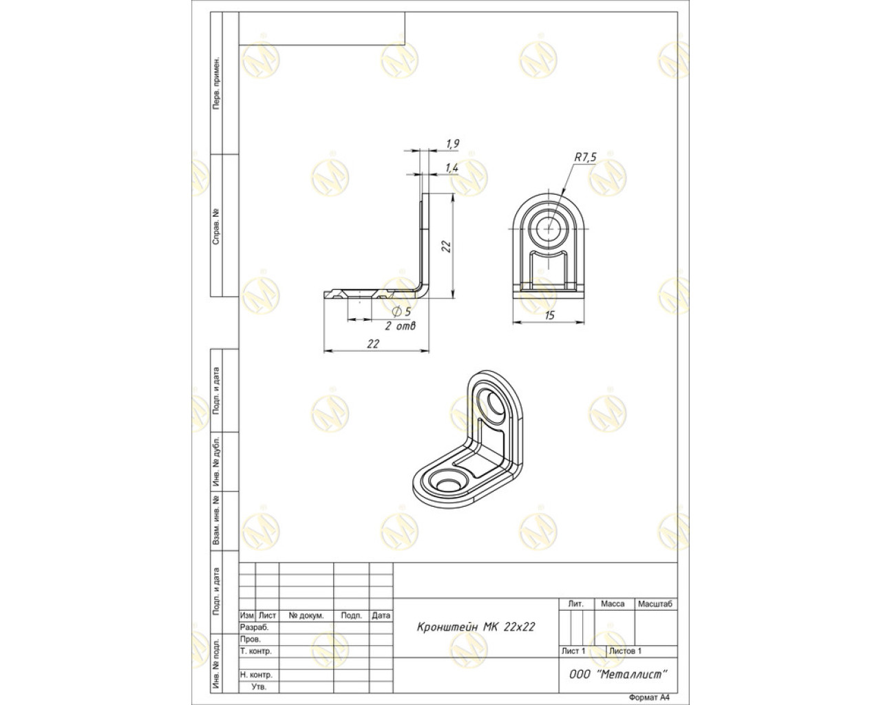 Кронштейн МК 22*22 цинк 54620004504925