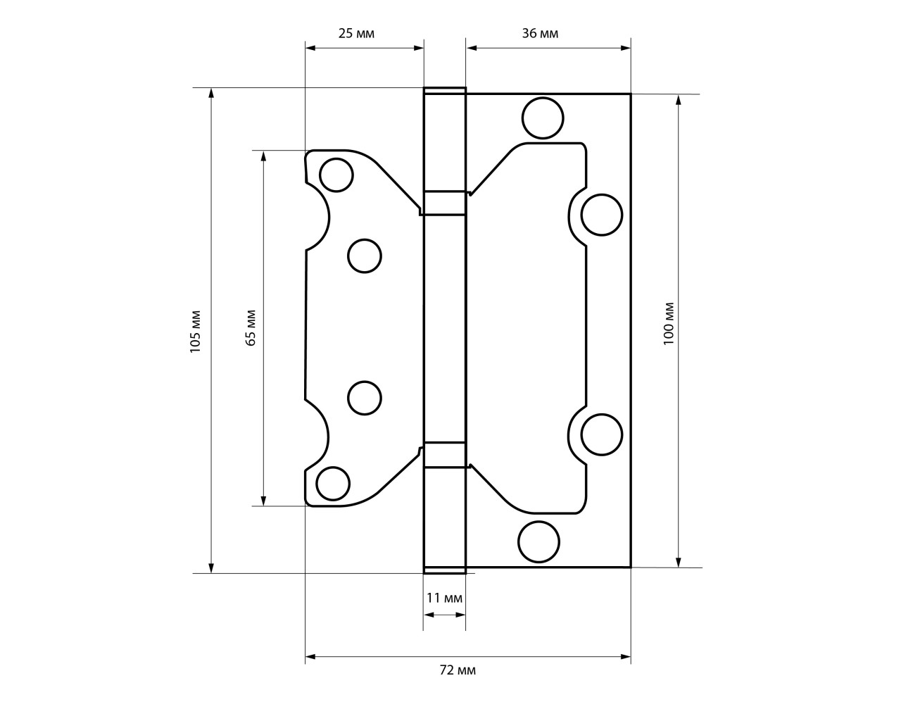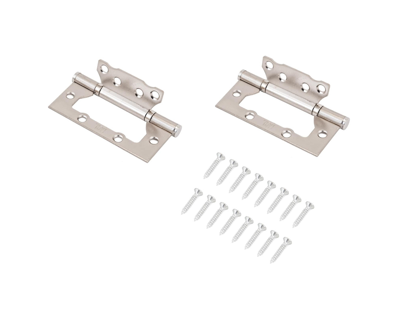 Петля дверная универсальная, без врезки. Предназначена для установки на левые и правые двери. Материал - сталь, гальваническое покрытие. Размер петли - 100*73*2мм. 2 противоскрипных кольца, плоский колпачок.
