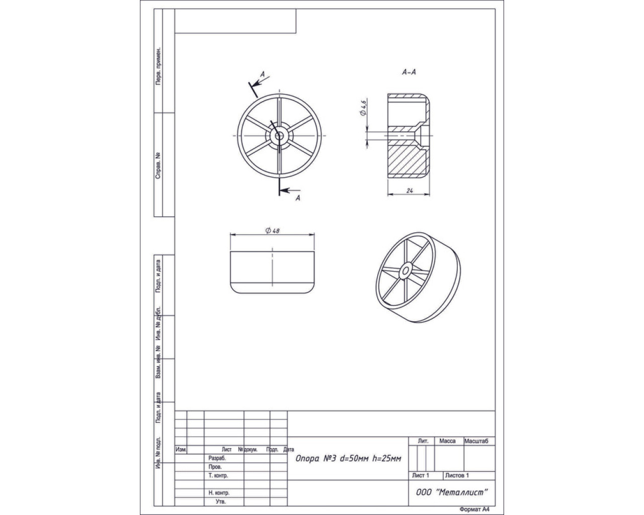 Металист Опора мебельная 3 пластмас
