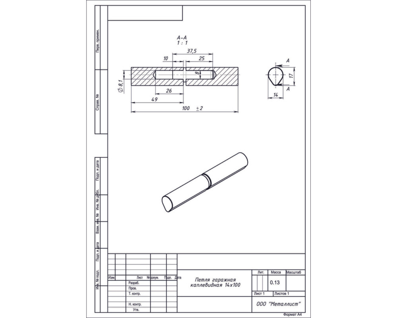 Металист Петля гаражная каплевидная 14*100 б/п (70) 14620004507850
