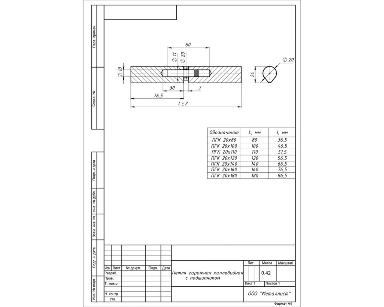 Металист Петля гаражная каплевидная с подш 20*100 б/п (32) 14680039978261
