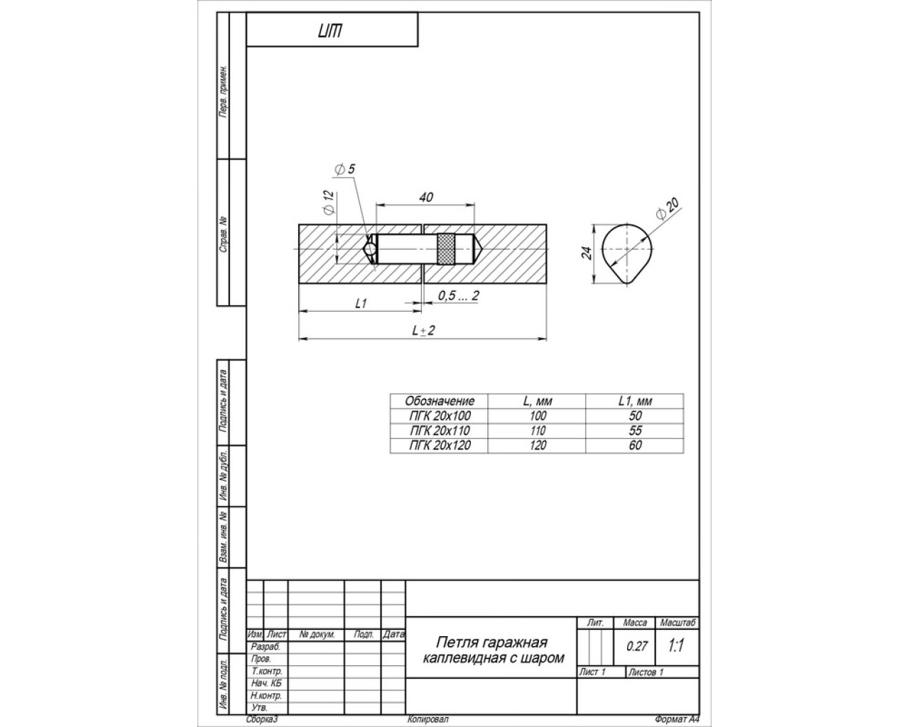 Металист Петля гаражная каплевидная с шаром 20*120 б/п (32) 14680039972443