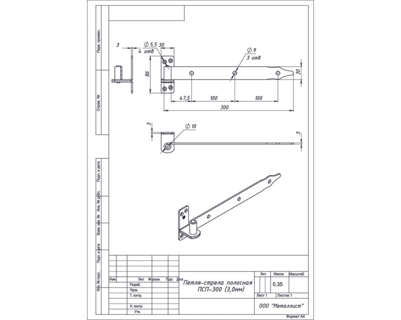 Металист Петля стрела полосная ПСП-300 3.0мм б/п 14680039972481